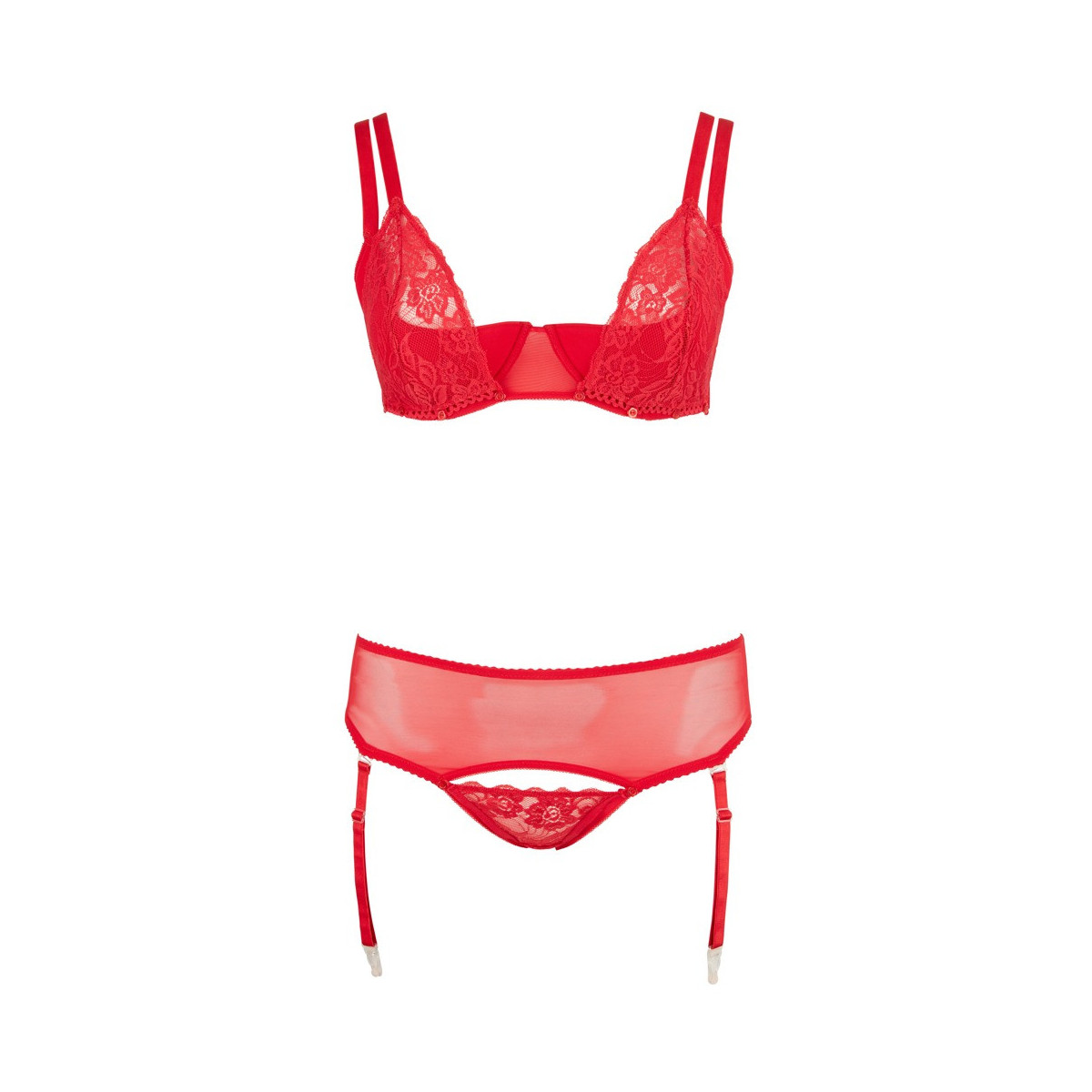 Cottelli Curves Bra and String - Completino Intimo, Rosso, Pizzo, Passionale, Taglia 90D/L