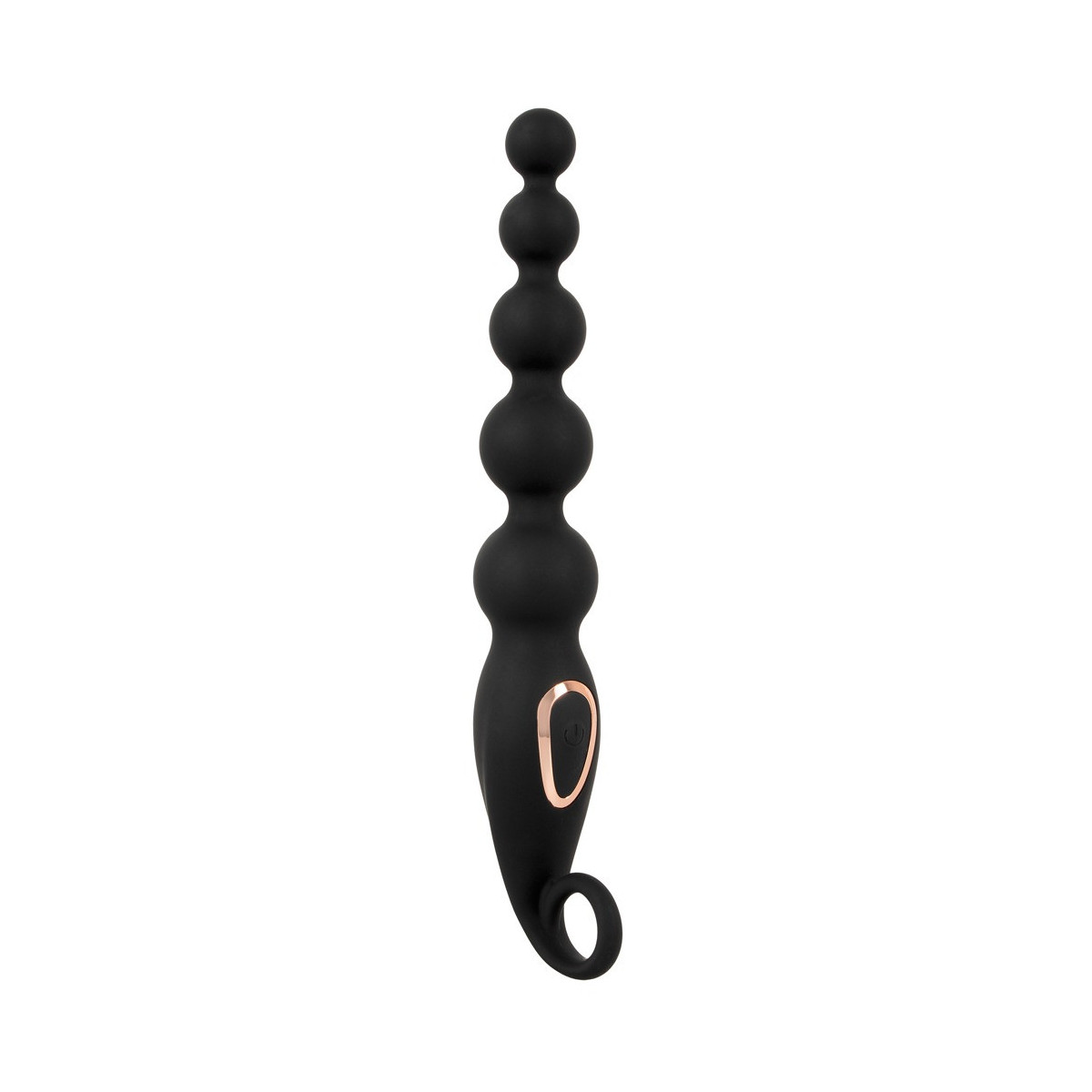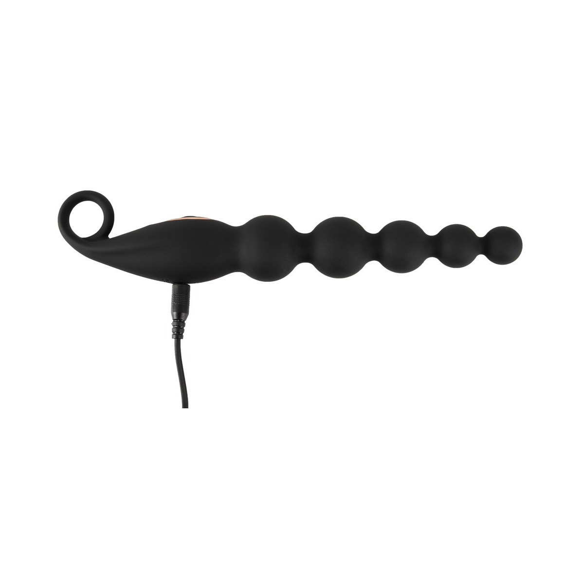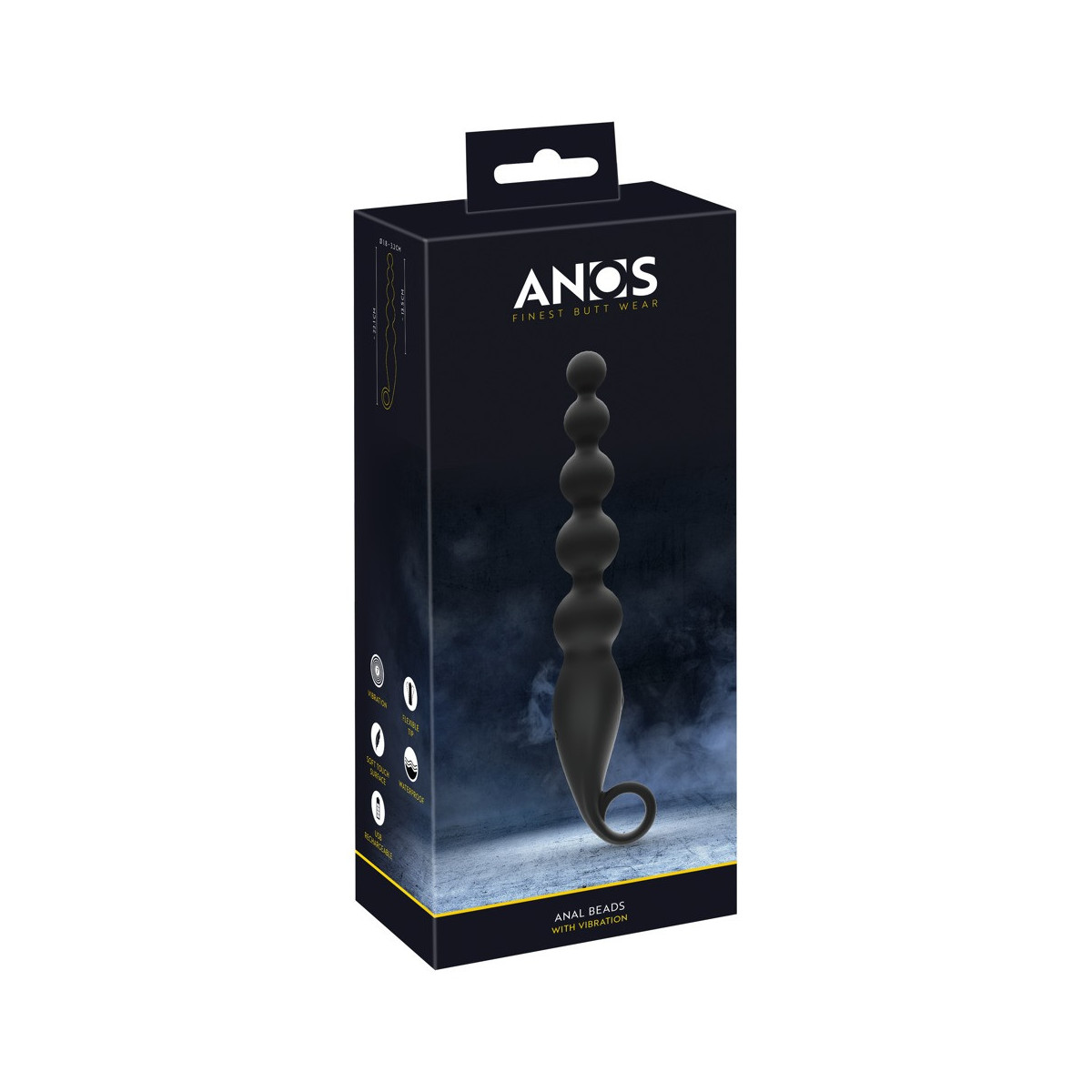 Vibratore anale Anal Beads with Vibration di ANOS con design a sfera e punta flessibile. 7 modalità di vibrazione forniscono una varietà eccitante nella parte posteriore della mente e possono essere comodamente controllate direttamente sul giocattolo al tocco di un pulsante. La base allargata con il pratico anello di presa assicura una manipolazione sicura senza scivolare. Poiché è impermeabile, può essere utilizzato anche nella vasca da bagno o nella doccia. Rivestito dappertutto con una consistenza morbida e setosa al tatto e dotato di una piccola sfera terminale sensibile, il vibratore in silicone è particolarmente facile da inserire.