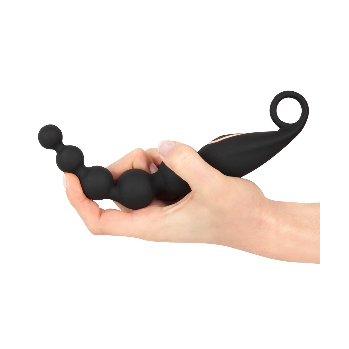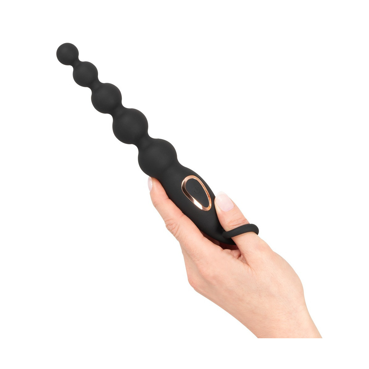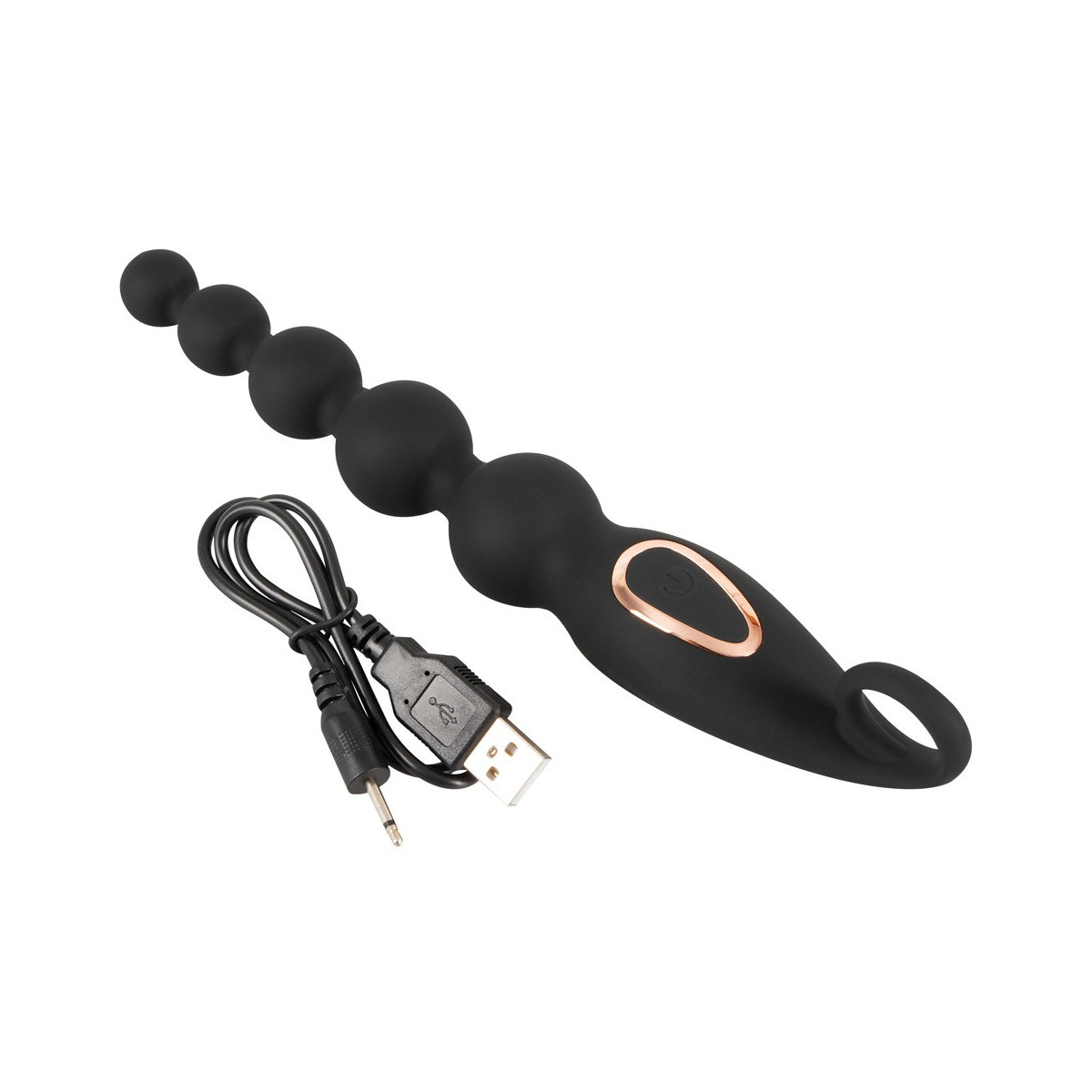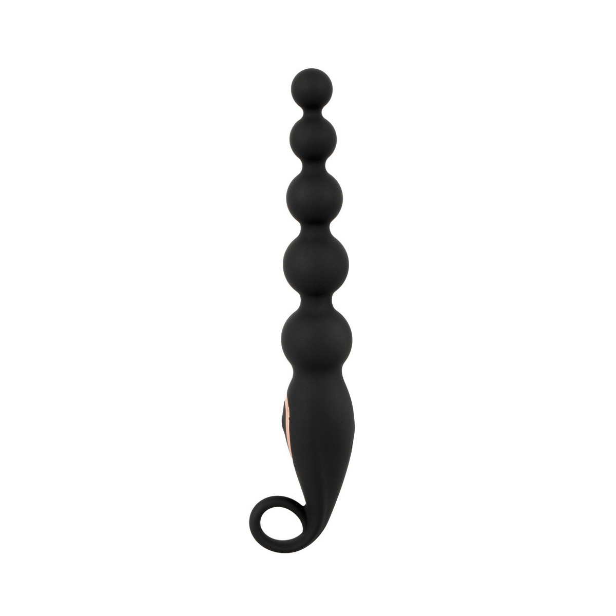 Vibratore anale Anal Beads with Vibration di ANOS con design a sfera e punta flessibile. 7 modalità di vibrazione forniscono una varietà eccitante nella parte posteriore della mente e possono essere comodamente controllate direttamente sul giocattolo al tocco di un pulsante. La base allargata con il pratico anello di presa assicura una manipolazione sicura senza scivolare. Poiché è impermeabile, può essere utilizzato anche nella vasca da bagno o nella doccia. Rivestito dappertutto con una consistenza morbida e setosa al tatto e dotato di una piccola sfera terminale sensibile, il vibratore in silicone è particolarmente facile da inserire.