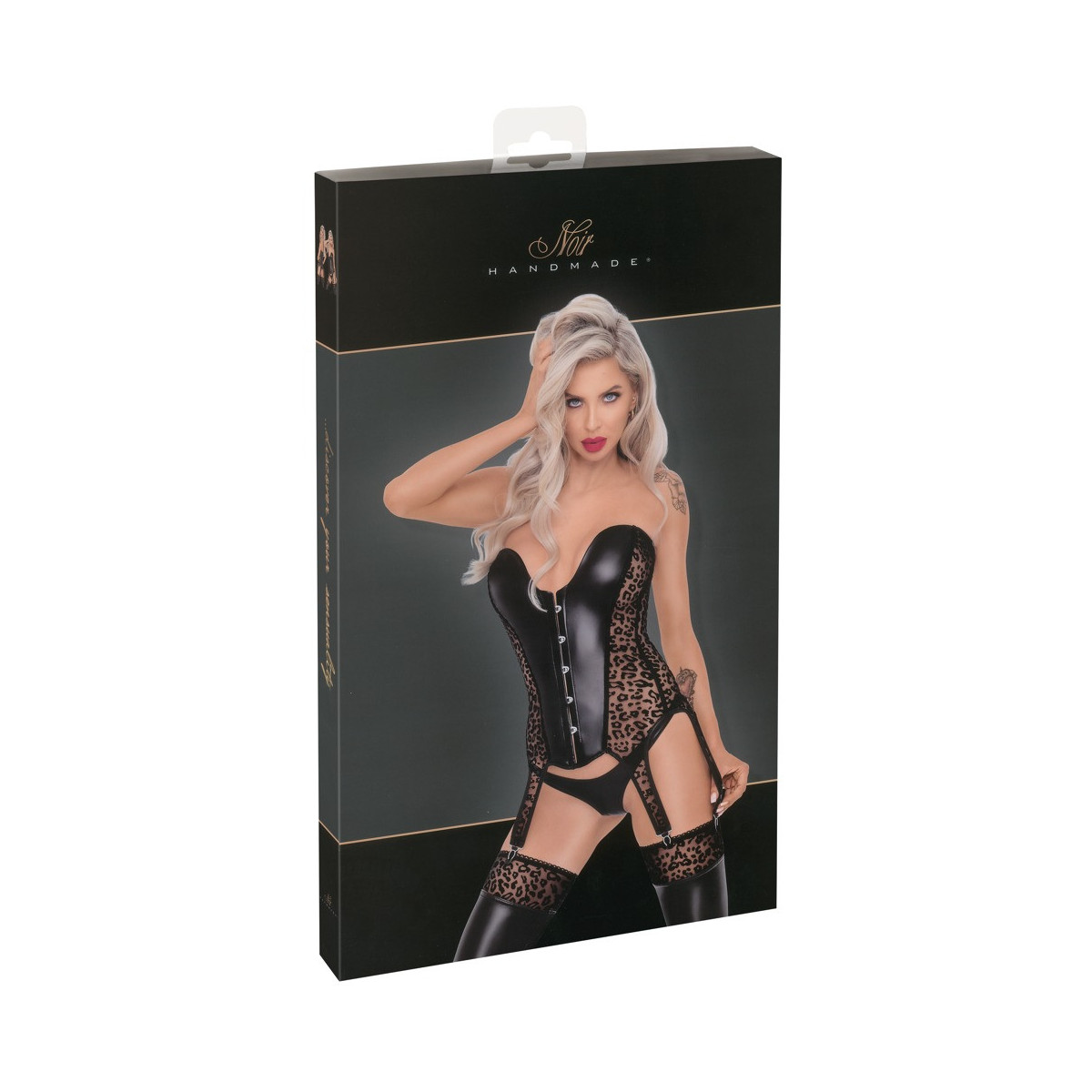 Noir Handmade Corset Leo - Reggicalze, Nero, Leopardato, Seducente, Taglia M