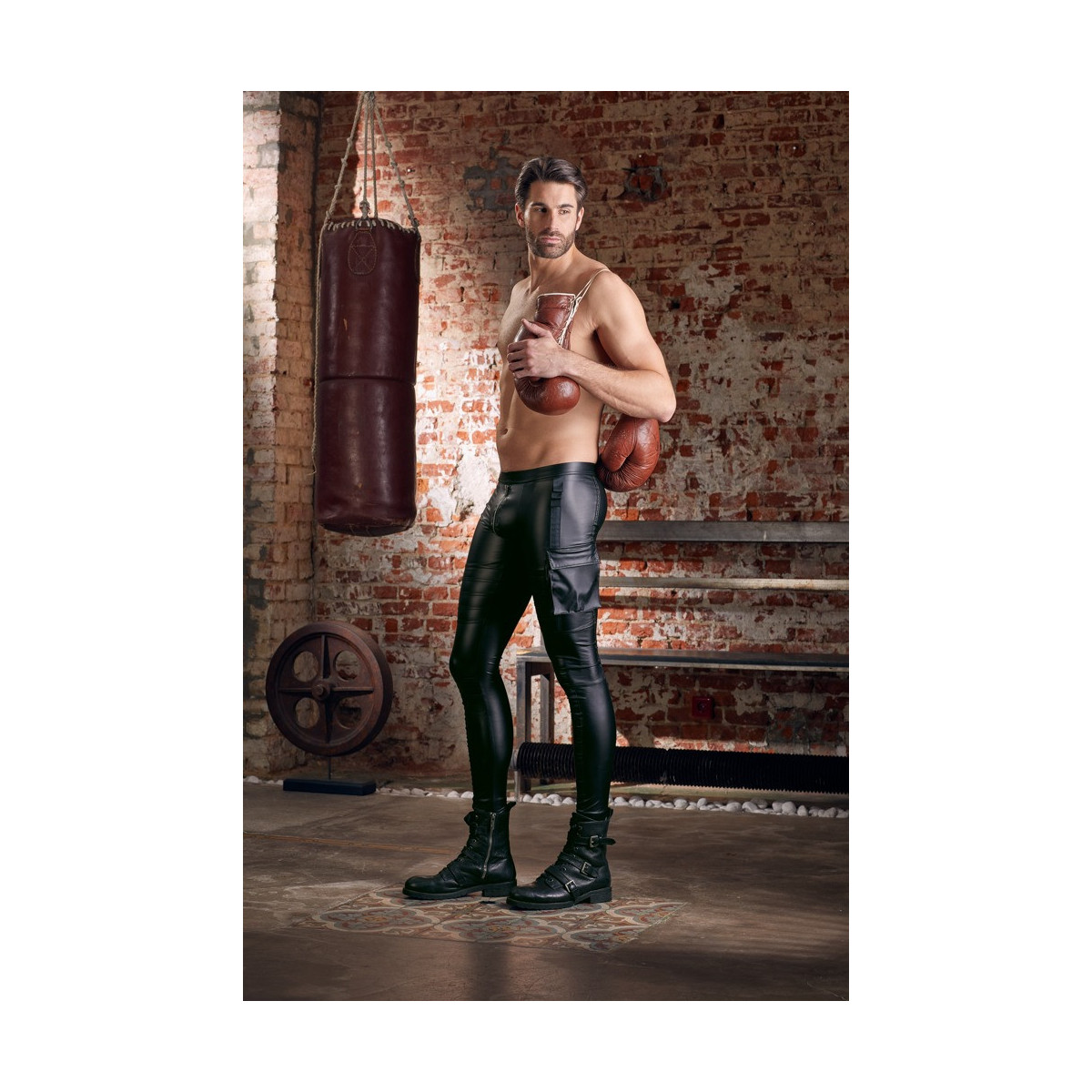 Nek Men's Trousers - Pantalone Nero, Biker, Passanti per Cintura, Sim - Fit, Taglia L