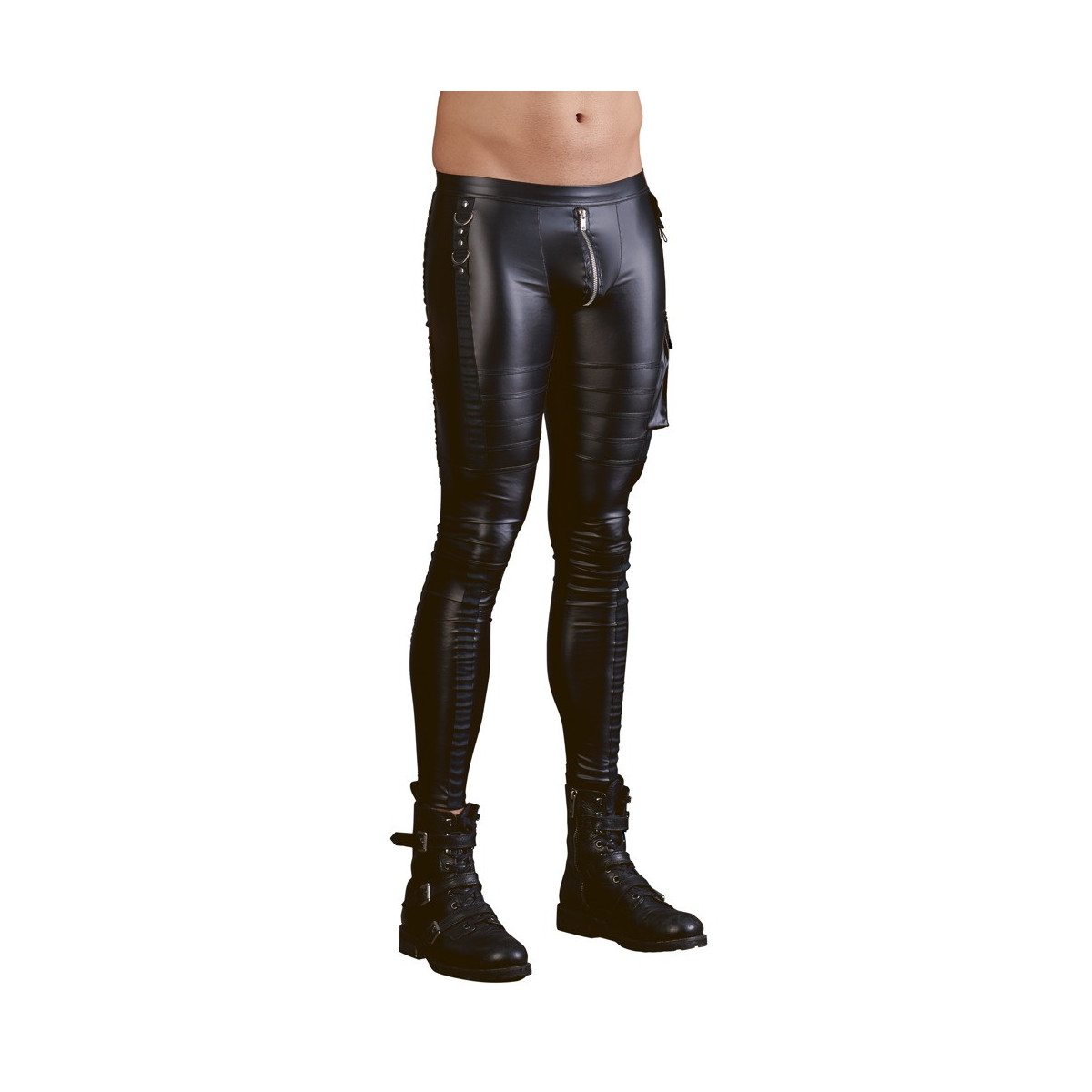 Nobili pantaloni slim-fit in look opaco con tasca sul lato, fasce cucite, rivetti e anelli. Piacevolmente elastico per il massimo comfort. La cerniera color argento nella parte anteriore rende perfetto l'aspetto roccioso.
