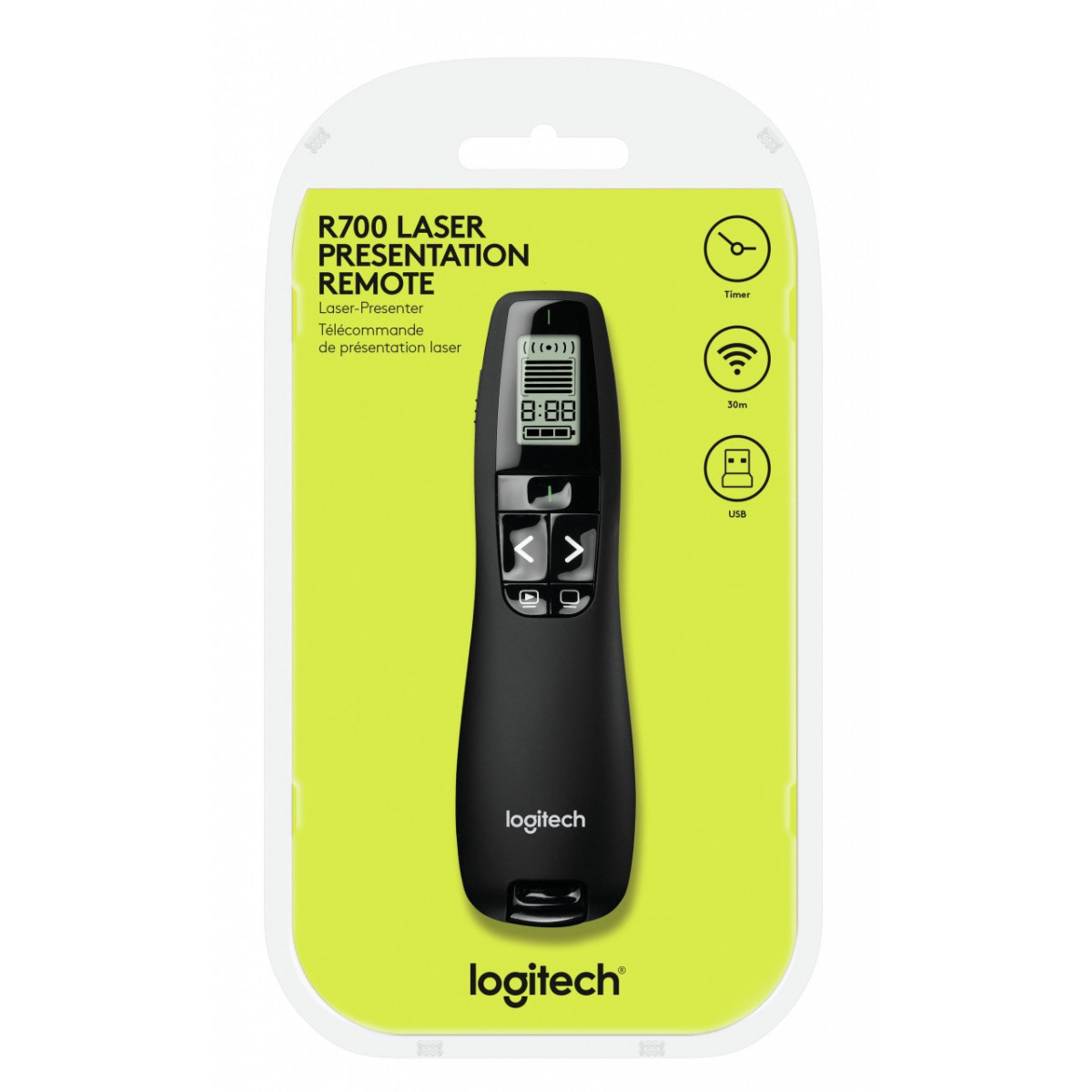 I pulsanti sono facilmente individuabili al tatto. L'impugnatura morbida si adatta perfettamente alla tua mano. Controlla la presentazione dalla prima all'ultima diapositiva.