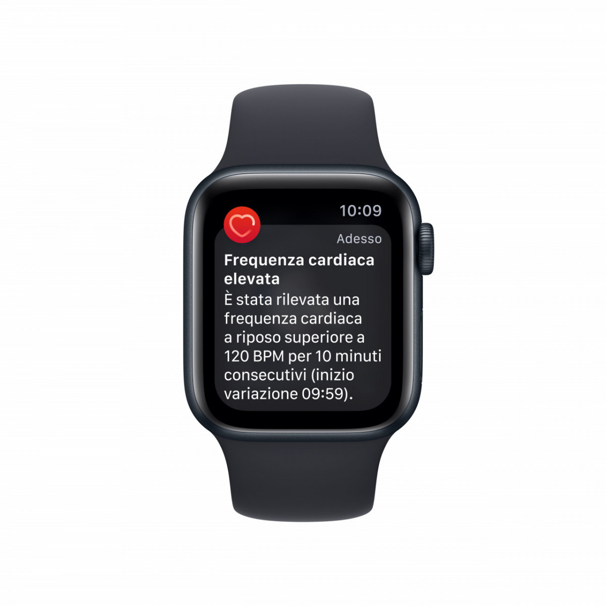 Apple Watch SE GPS 40mm Cassa in Alluminio color Mezzanotte con Cinturino Sport Band Mezzanotte - Regular. Tecnologia display: OLED, Risoluzione del display: 324 x 394 Pixel, Touch screen. Memoria flash: 32 GB. Wi-Fi. GPS (satellitare). Peso: 26,4 g. Impermeabile fino a: 50 m, Colore cinturino: Nero. Sistema operativo incluso: watchOS 9