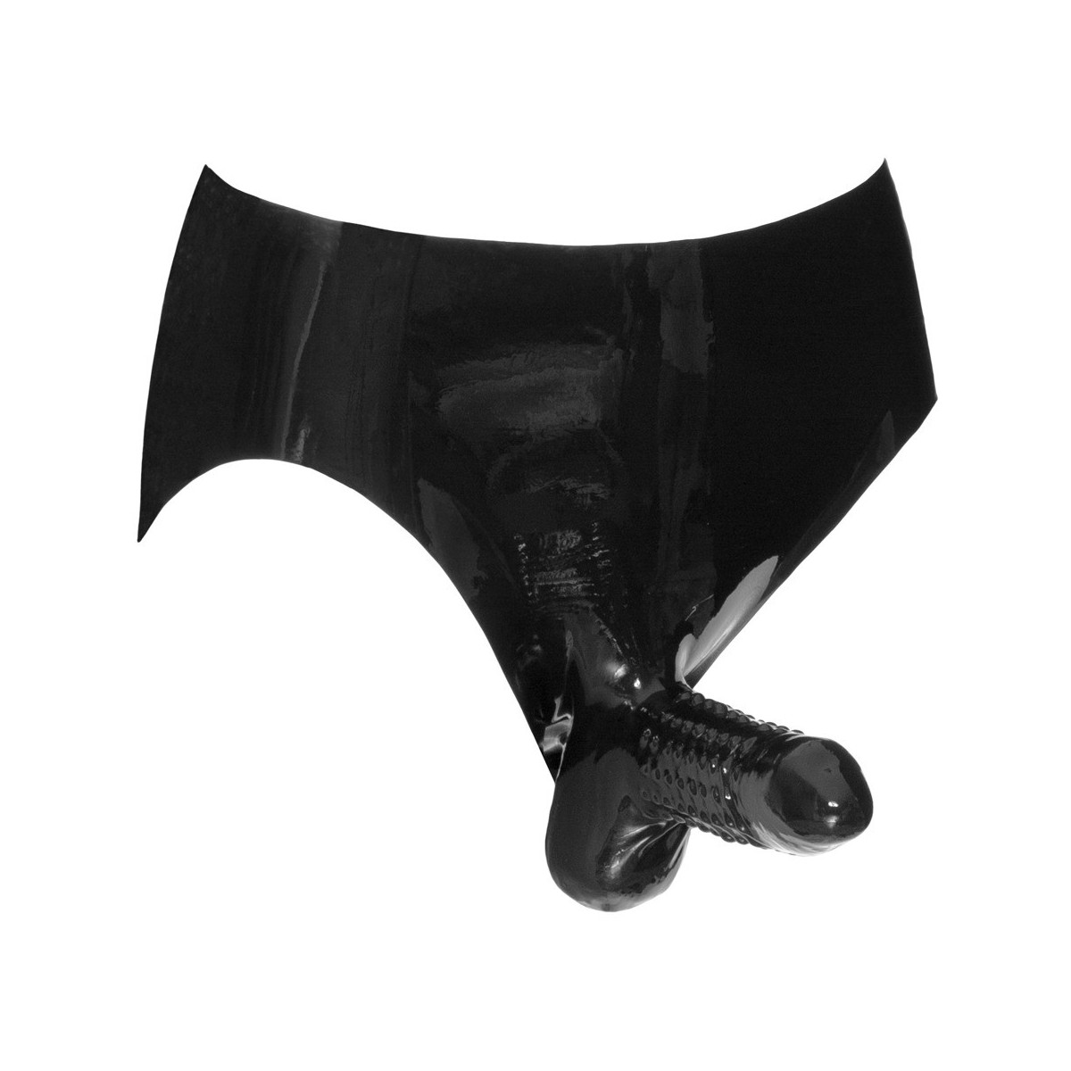 Con questo slip ogni amante del fetish con un pene è perfettamente equipaggiato. La guaina ruvida con il glande testurizzato è fatta di lattice e si adatta bene. Anche integrato nella manica c'è un sacchetto testurizzato per i testicoli. Perfetto per l'amante del lattice che ama trasmettere il suo affetto per il lattice.
