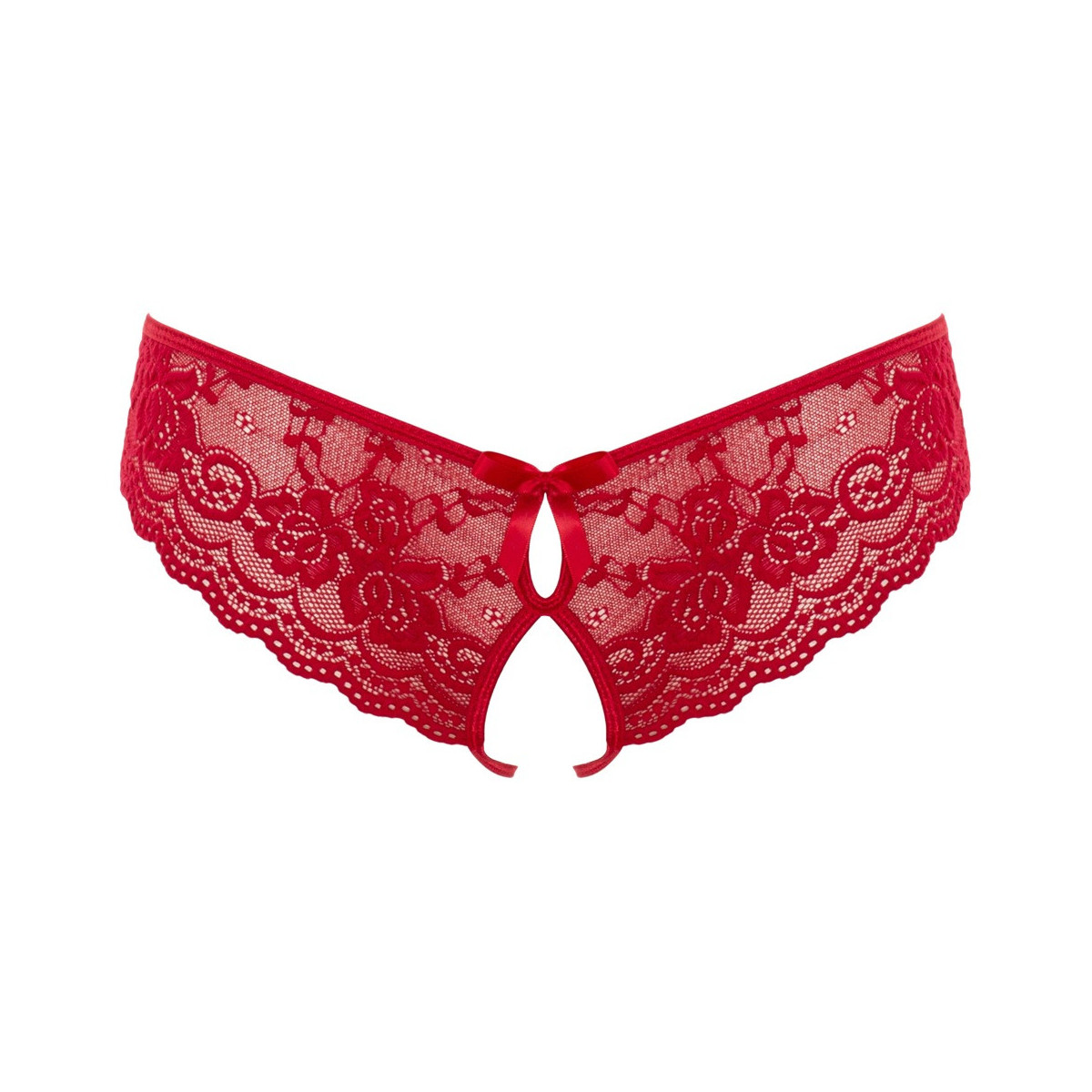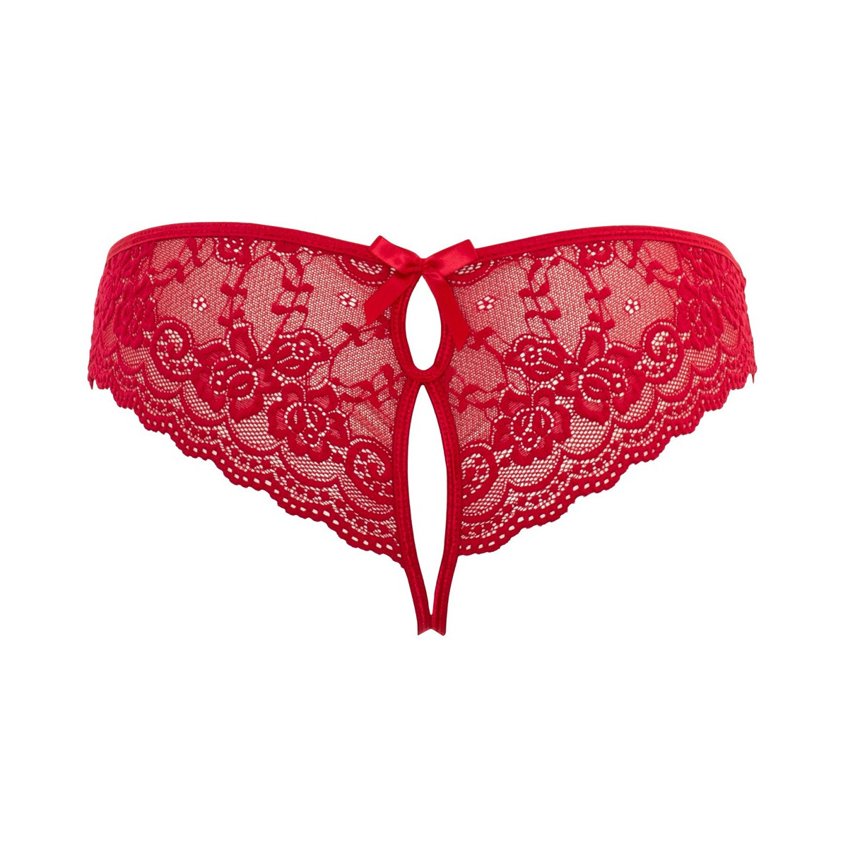 Cottelli Lingerie Lace Briefs Crotchless - Slip in Pizzo Rosso, Vagina e Ano Scoperti, Taglia XL