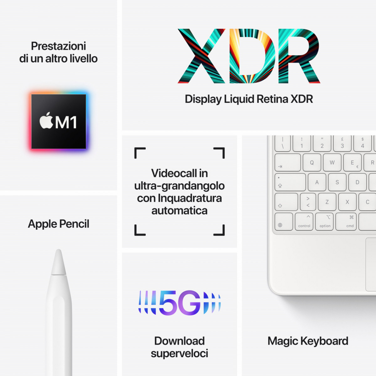 L’iPad al suo massimo livello. Ora con le prestazioni rivoluzionarie del chip M1, uno spettacolare display XDR e la supervelocità del 5G. Allaccia le cinture.