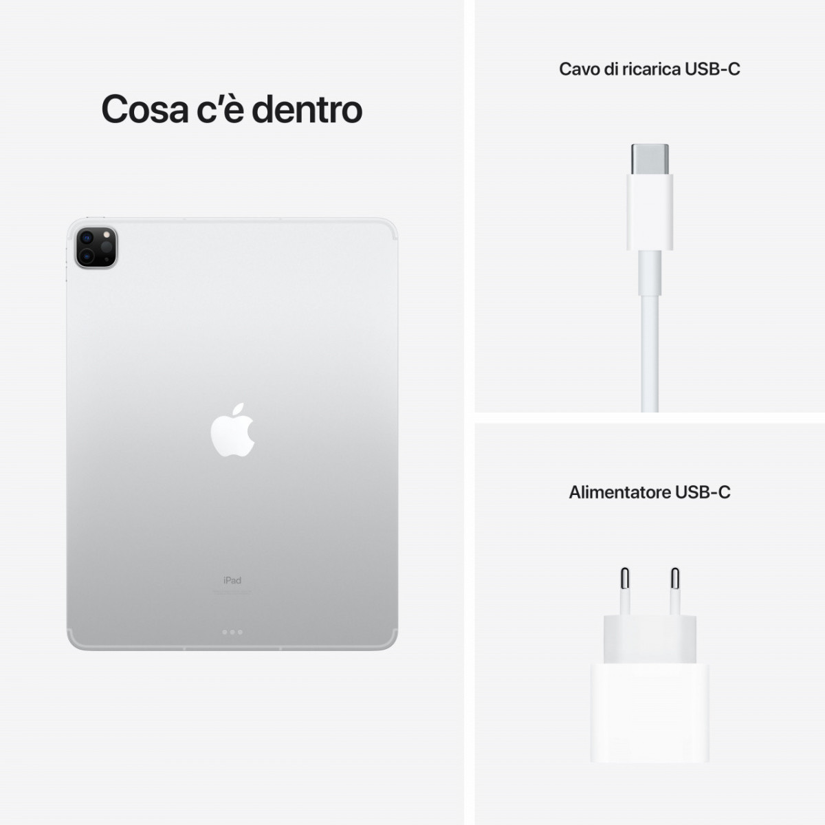 Apple iPad Pro 12.9" con Chip M1 (quinta gen.) Wi-Fi + Cellular 512GB - Argento. Dimensioni schermo: 32,8 cm (12.9"), Risoluzione del display: 2732 x 2048 Pixel, Tecnologia display: Mini LED. Capacità memoria interna: 512 GB. Famiglia processore: Apple M, Modello del processore: M1. RAM installata: 8 GB. Risoluzione fotocamera posteriore (numerico): 12 MP, Tipo di fotocamera posteriore: Doppia fotocamera, Risoluzione fotocamera frontale (numerico): 12 MP. Wi-Fi standard: Wi-Fi 6 (802.11ax). Assistenza funzione GPS (A-GPS). Peso: 684 g. Sistema operativo incluso: iPadOS 14. Colore del prodotto: Argento
