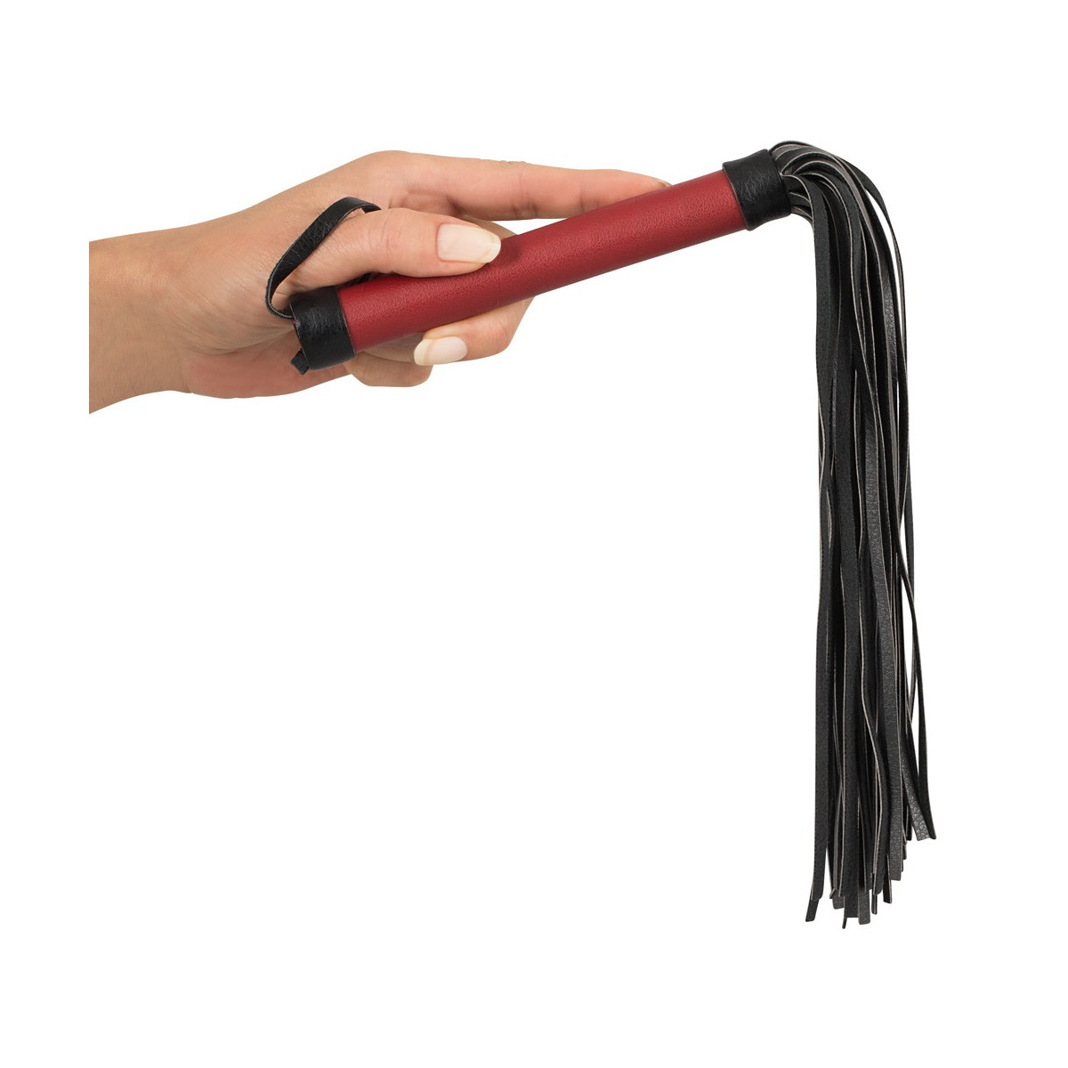 Polsini con chiusure in velcro regolabili e catena di collegamento staccabile (moschettone). Rosso/nero.