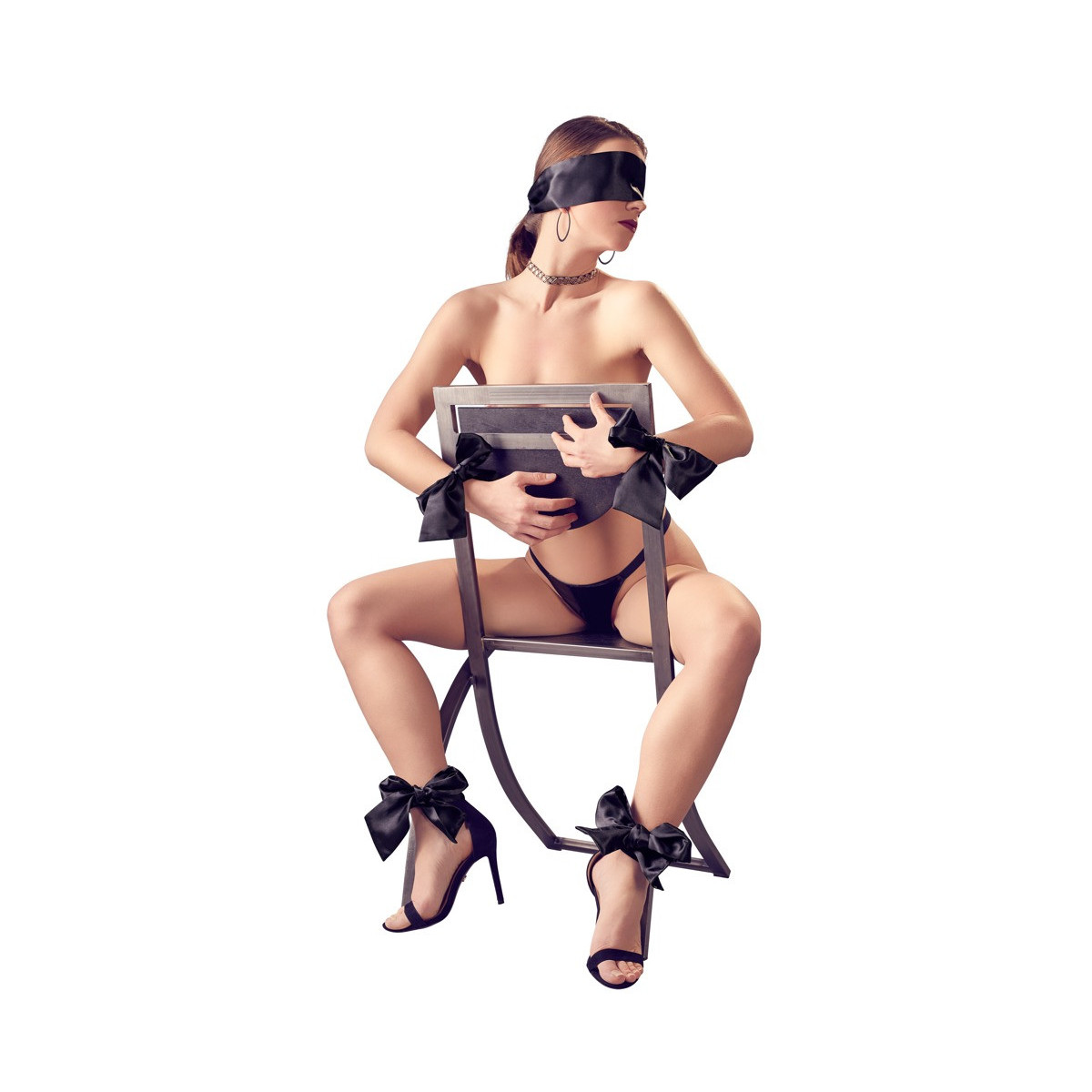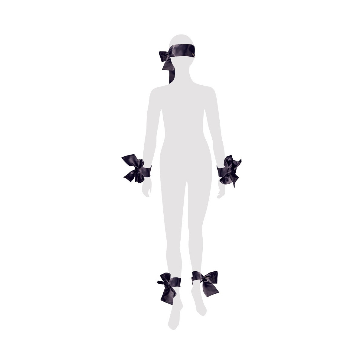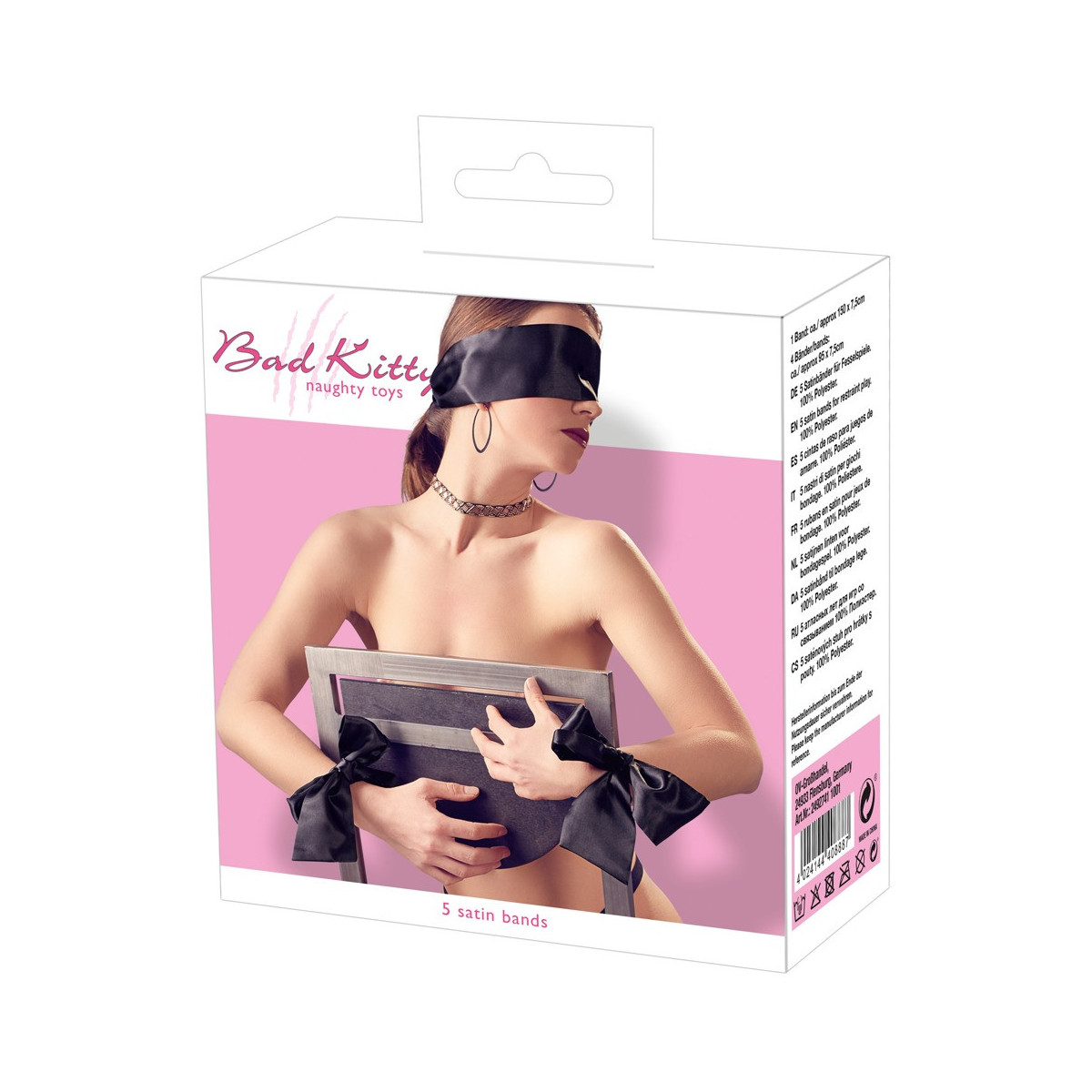 Set di 5 nastri di raso in 5 pezzi con 1 nastro più lungo per la testa e 4 nastri più corti per legare mani e piedi. Realizzato in tessuto lucido, cucito in due strati e con estremità leggermente smussate. Ideale per giochi sensuali di bondage.