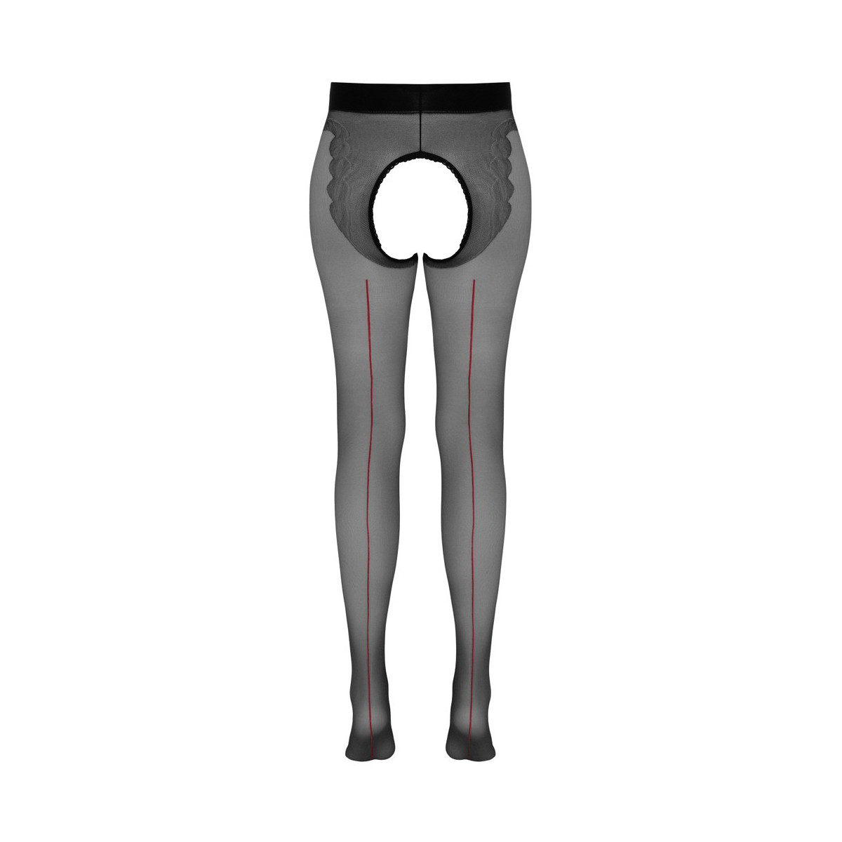 Collant reggicalze setoso con invitante cavallo aperto e cucitura decorativa rossa nella parte posteriore. Certificato Oekotex. 20 den.