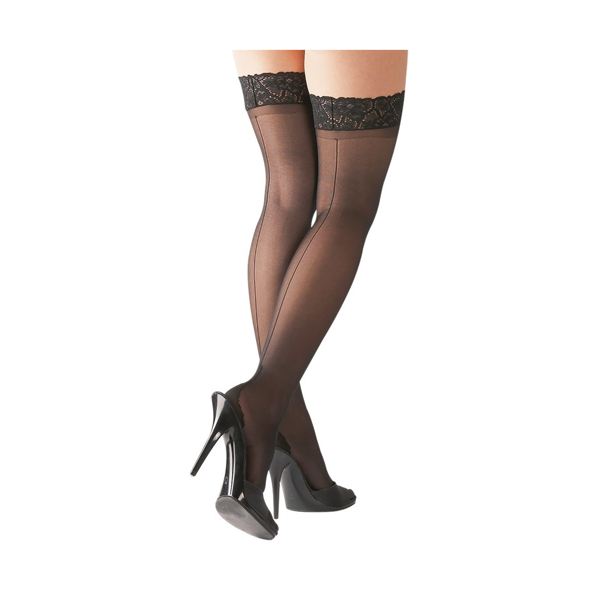 Classico nero, con balza di pizzo, tallone alto e cucitura. Calze autoreggenti con rinforzo di silicone nella balza per una tenuta antiscivolo. Con certificazione Oeko-Tex. 90% poliammide, 10% elastan.