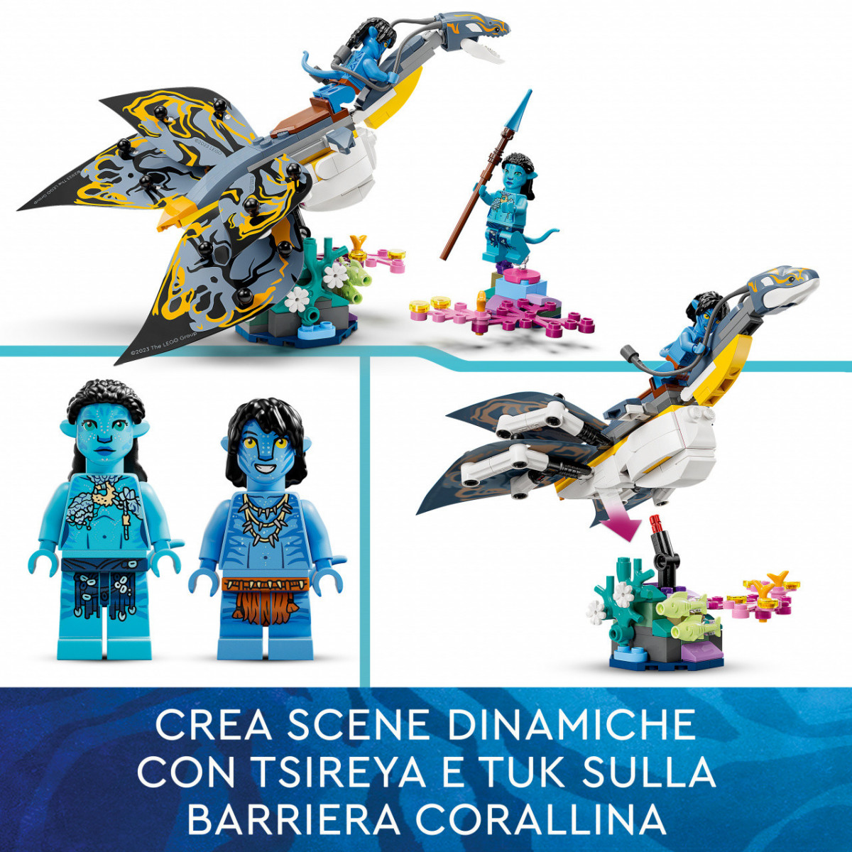 Rivivi i momenti più emozionanti di “Avatar: La via dell’acqua”, o crea scene e storie dinamiche a tema subacqueo con il modellino da costruire dell’ilu. Questo animale LEGO Avatar ha testa, collo e pinne snodabil, e una seduta sul dorso per un personaggio LEGO Avatar. Nella confezione sono comprese le minifigure LEGO di Tsireya e Tuk, delle costruzioni per realizzare una parte di barriera corallina di Pandora, 2 pesci giocattolo alieni e un supporto da utilizzare per esporre questo set LEGO da collezione come decorazione di casa o della cameretta dei bambini. Un'idea regalo perfetta per un compleanno o per un'occasione speciale, adatta ai fan del film Avatar e ai bambini che amano i giocattoli subacquei.