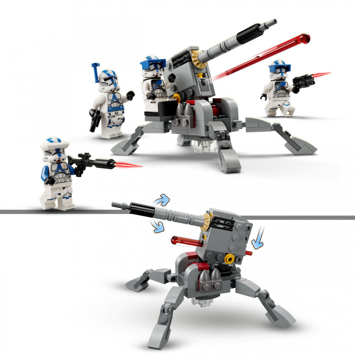 Questo set è caratterizzato da 4 minifigure LEGO, novità di gennaio 2023: un Ufficiale della Legione 501 con pistola giocattolo blaster, un Clone Specialista con fucile blaster e 2 Heavy Troopers; tutto il necessario per il gioco creativo ricco di azione. Il set include anche un cannone anti-veicolo AV-7 da costruire in mattoncini LEGO, dotato di gambe regolabili, di un cannone sollevabile, di uno shooter a molla, e di un posto per una minifigure LEGO.