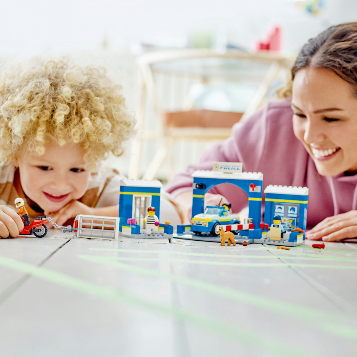 L’edificio della stazione della polizia LEGO è caratterizzato da una barriera apribile e ospita un ufficio e una prigione, dalla quale è possibile evadere. Il set include una macchina della polizia e una moto giocattolo per la fuga del ladro, le minifigure LEGO di 2 poliziotti e 2 ladri, oltre a una figura di cane giocattolo. Questo playset, facile da costruire, comprende anche un mattoncino LEGO Starter Brick e degli accessori, come una gemma, una radio della polizia, una chiave della prigione, 2 tazze e un megafono, con cui inventare storie e giochi creativi.