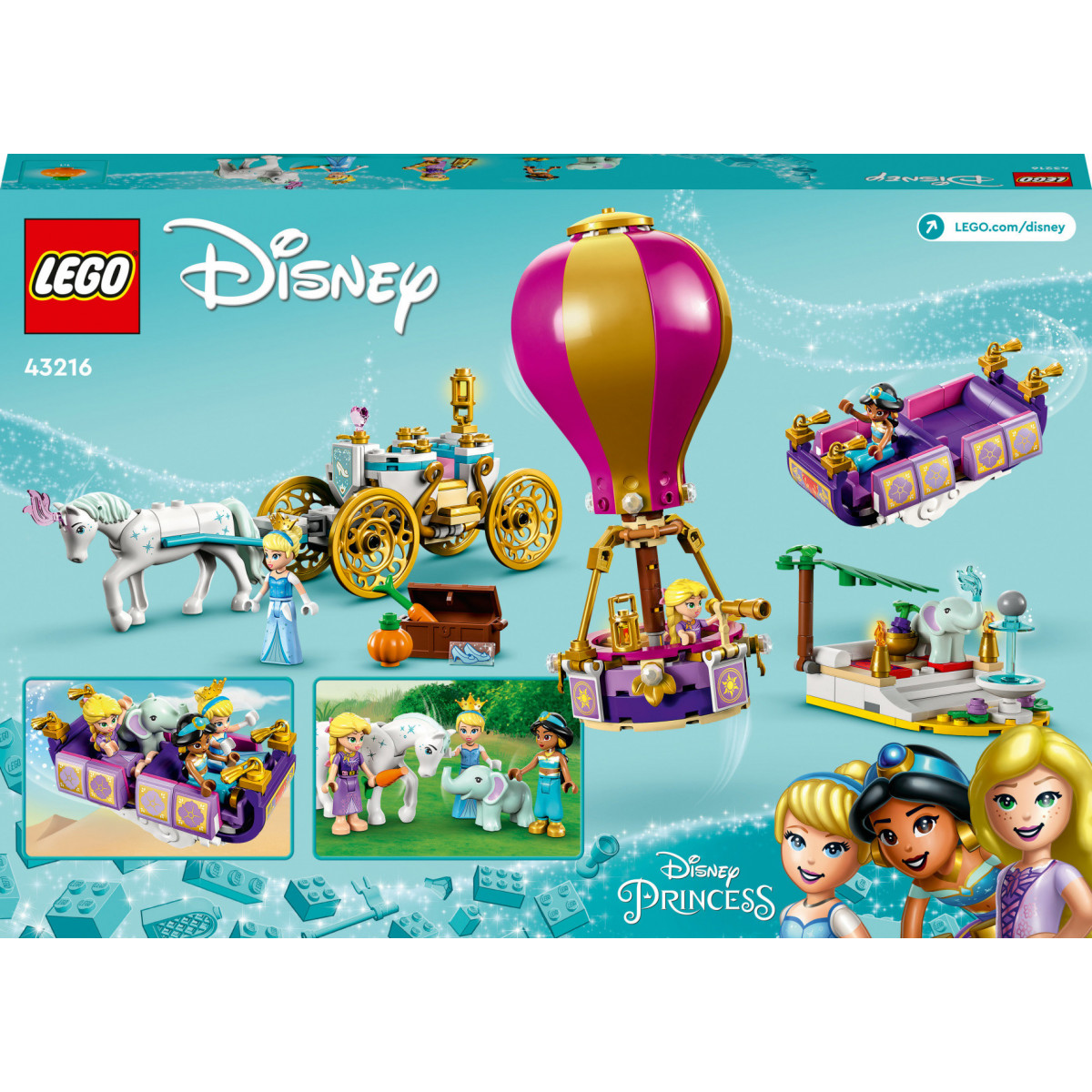 I bambini dai 6 anni in su e i fan di Aladino, Cenerentola e Rapunzel troveranno tanta ispirazione nel set Il viaggio incantato della principessa LEGO ǀ Disney (43216), con 3 modalità di viaggio costruibili, un piccolo salotto, 3 mini-doll LEGO e 2 animali LEGO. Mentre costruiscono, i bambini possono vivere un’avventura di costruzione facile e intuitiva con l’app LEGO Builder, nella quale possono ingrandire e ruotare i modelli in 3D, salvare i set e tenere traccia dei loro progressi.