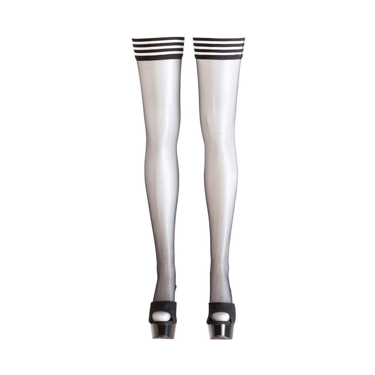Senza reggicalze con rinforzo di silicone sulla balza per una tenuta antiscivolo. Nero. Balza nell‘ottica provocante a righe. Con certificazione Oeko-Tex. 90% poliammide, 10% elastan.