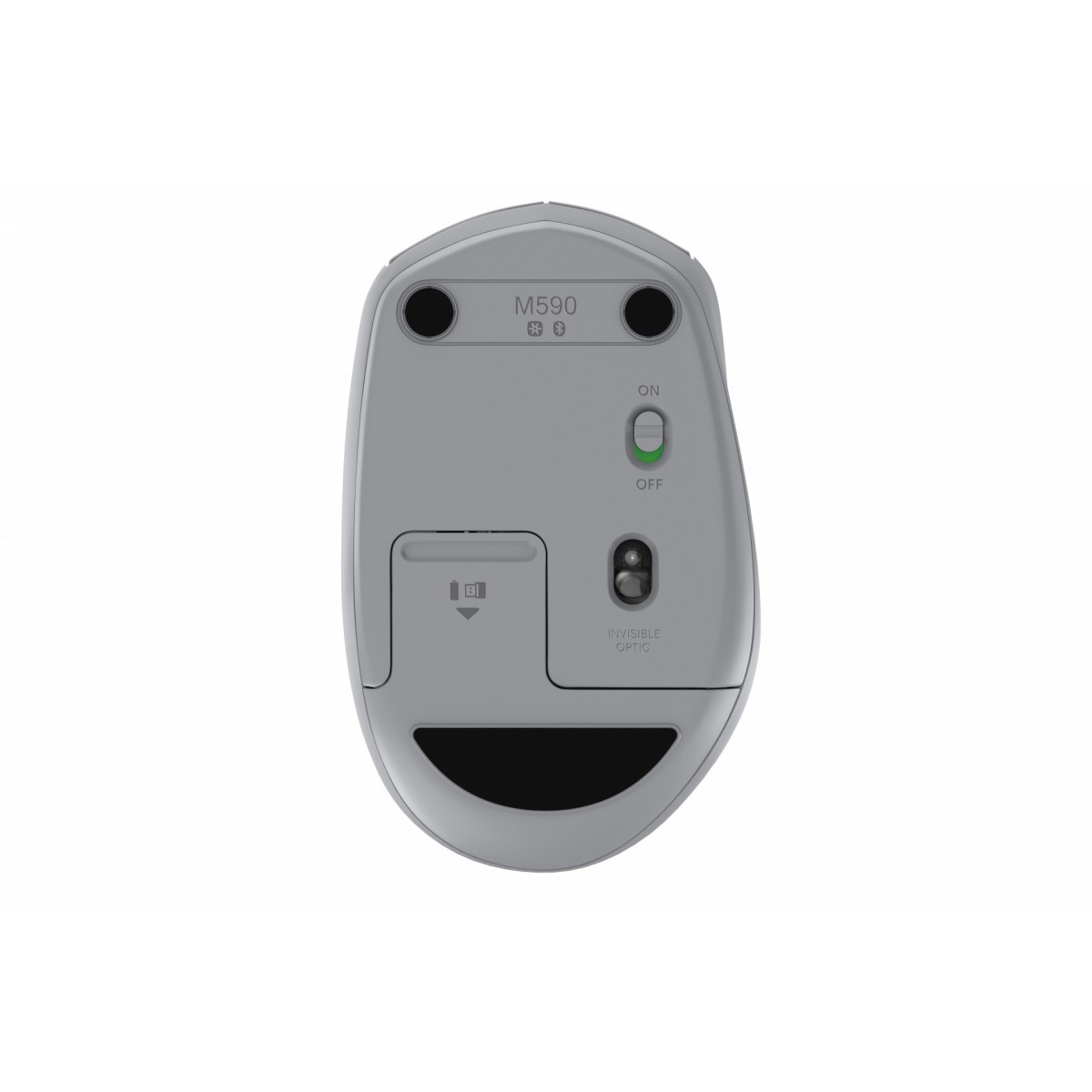 Logitech M590. Fattore di forma: Mano destra. Tecnologia di rilevamento del movimento: Ottico, Interfaccia dispositivo: Wireless a RF + Bluetooth, Risoluzione movimento: 1000 DPI, Tipo di pulsanti: Tasti premuti, Numero di tasti: 7, Tipo di scorimmento: Rotella. Alimentazione: Batterie. Colore del prodotto: Grigio