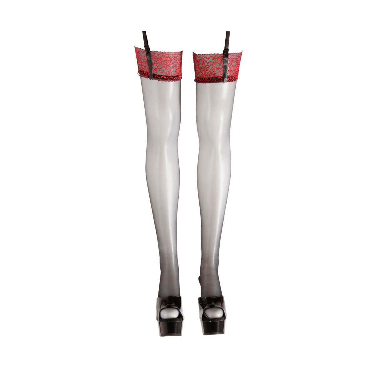 Cottelli Legwear Stockings Black Red - Calze Nere, Pizzo Rosso, Taglia M