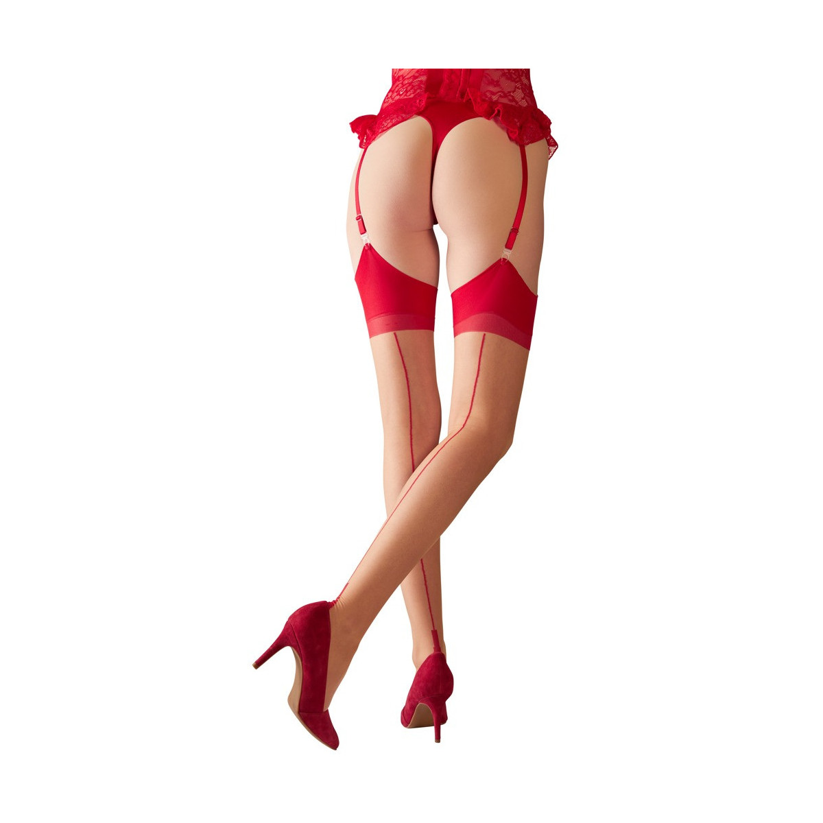 Cottelli Legwear Stockings Red - Calze ,Rosse, Riga Dietro, Eleganti, Taglia 3