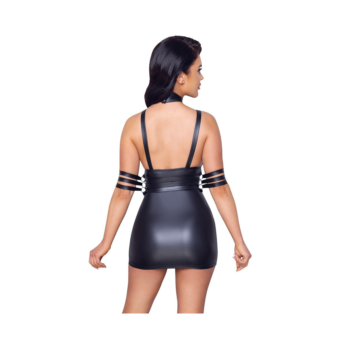 Abito corto elastico di Cottelli BONDAGE dal taglio aderente alla figura e dal nobile look nero opaco con elementi metallici color argento. Taglio basso sul davanti, eccitante senza schiena. Le 4 cavigliere in dotazione possono essere tirate attraverso gli anelli di bondage laterali sulla cintura a 3 vie. Con le loro chiusure in velcro regolabili, le cinghie si indossano rapidamente per fissazioni lussuriose. La fascia toracica è anche attaccata alla cintura, che porta al colletto con chiusura a scatto. La cintura, la fascia toracica e le cinghie sono regolabili per una perfetta vestibilità - la cintura e il collare sono completamente rimovibili.