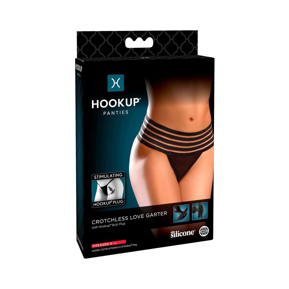 HookUp Panties Crotchless Love Garter - Perizoma con Plug Anale, Taglia S-L