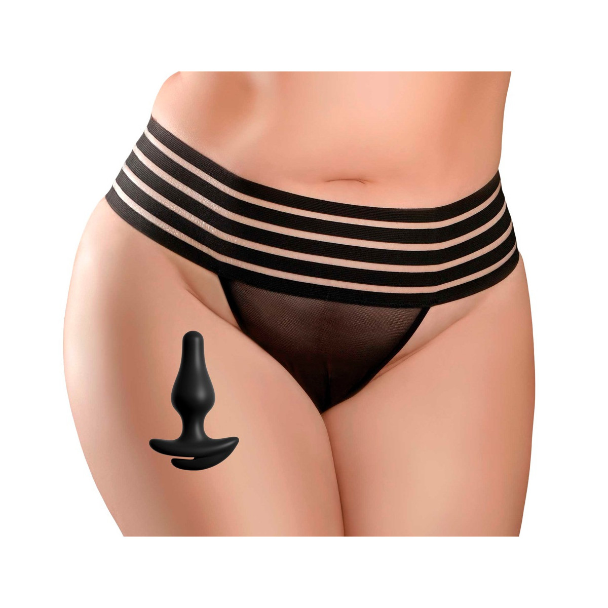 Crotchless Love Garter di HookUp Panties è un perizoma senza culo a cui è attaccato il plug anale incluso. Il perizoma con un'ampia e comoda fascia a strisce in vita non ha una fascia per il sedere, ma è tenuto in posizione dal plug inserito con l'anello di tenuta del perizoma. Così ogni movimento del corpo tira e tira delicatamente il plug e stimola la regione anale in modo eccitante - un divertimento molto discreto per le coccole!