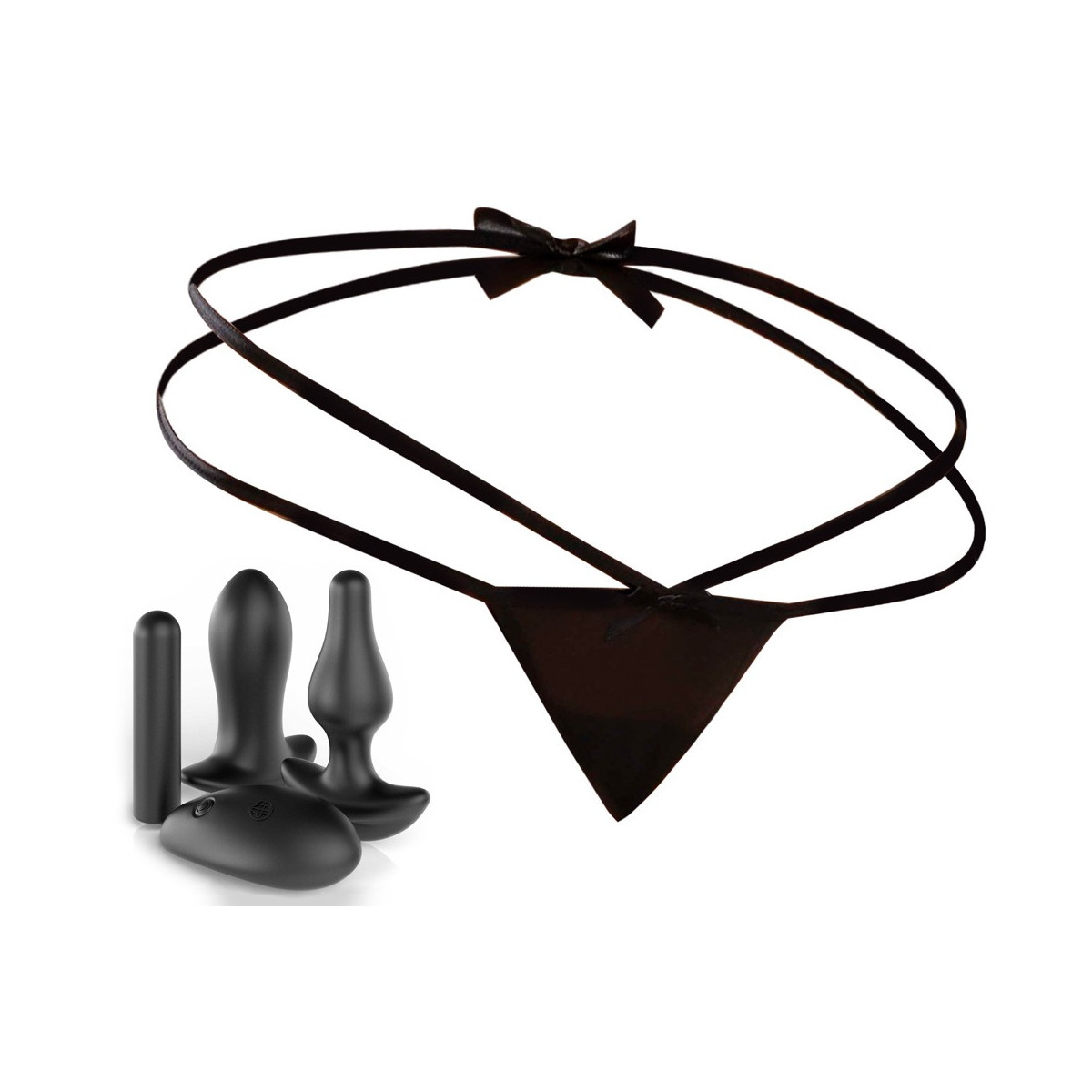 Remote Triple Teaser di HookUp Panties è un perizoma senza fondo al quale è attaccato il plug anale incluso e il vibrobullet impermeabile incluso può essere inserito. È incluso anche un plug vaginale in cui il vibrobullet può essere inserito.