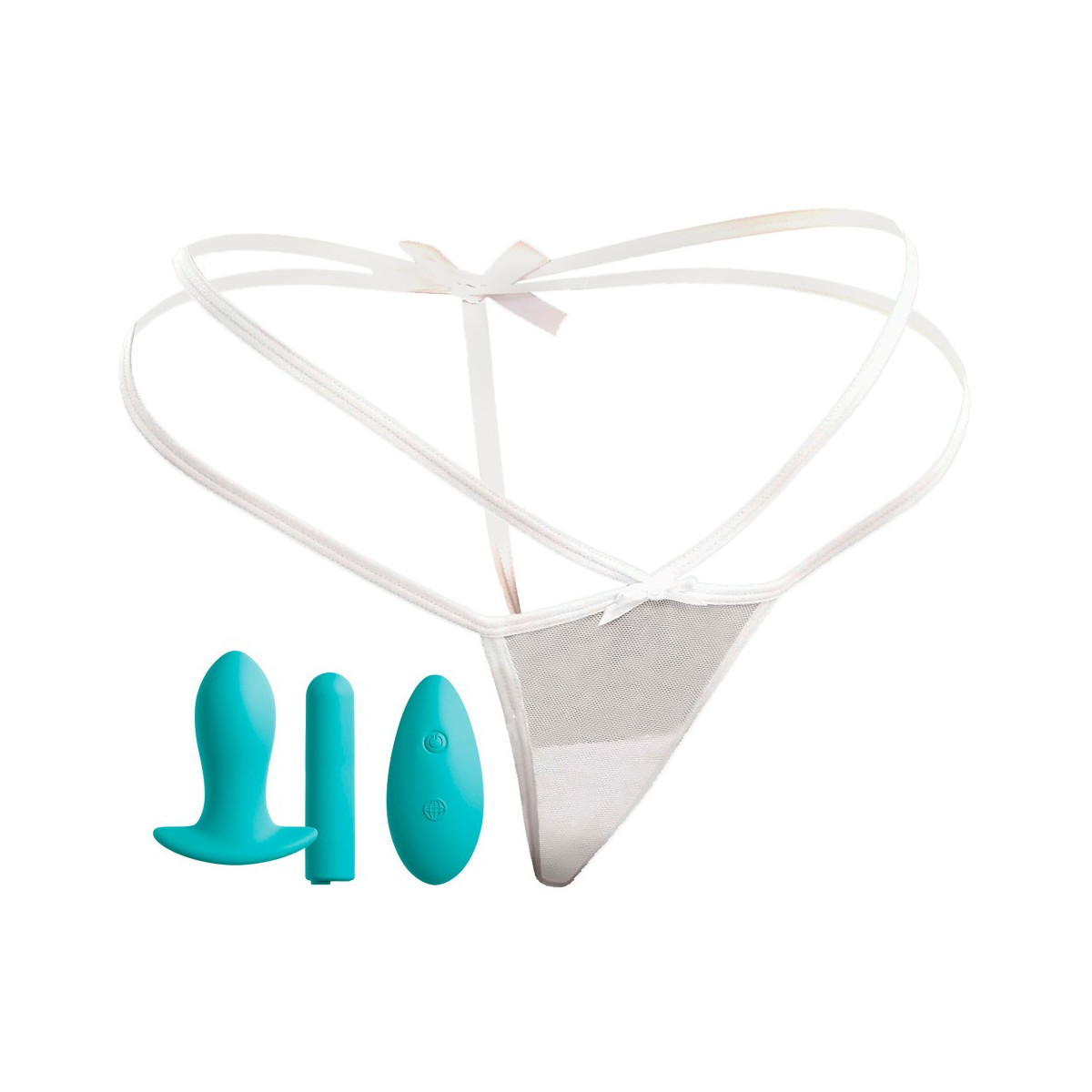 Remote Bow-Tie G-String di HookUp Panties è un perizoma perfetto che tiene il plug vaginale incluso in modo sicuro nel tuo spazio più intimo. Il vibrobullet impermeabile incluso può essere inserito nella spina per un'ulteriore stimolazione vibratoria. Il perizoma ha una piccola tasca nel cavallo per il vibrobullet.