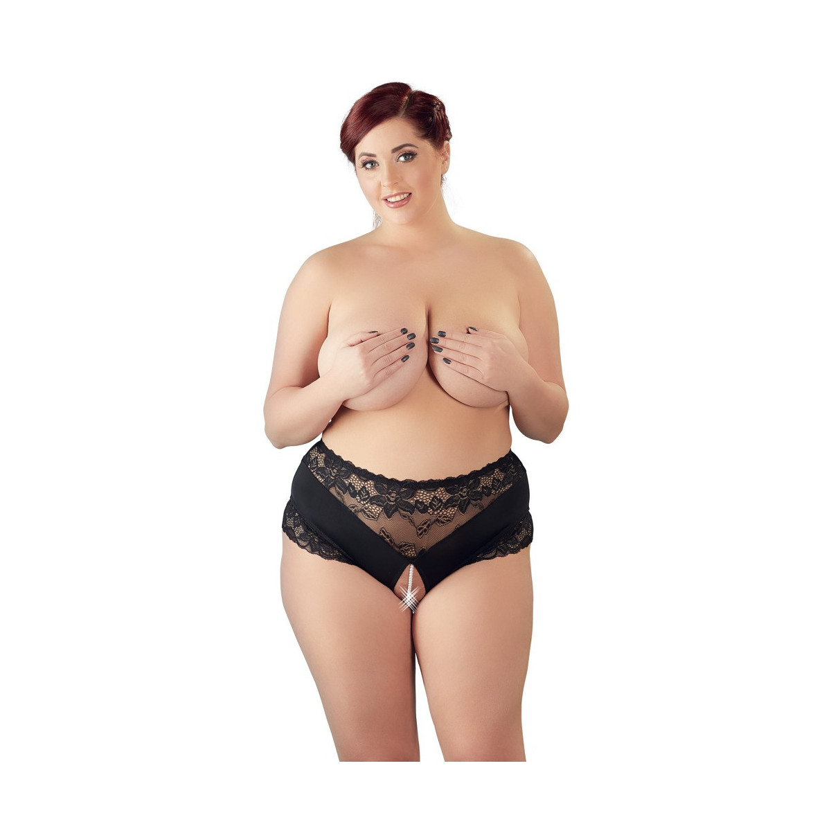 Cottelli Curves Pearl Briefs - Slip, Nero, Vagina e Ano Scoperti, Stimolante, Taglia XL