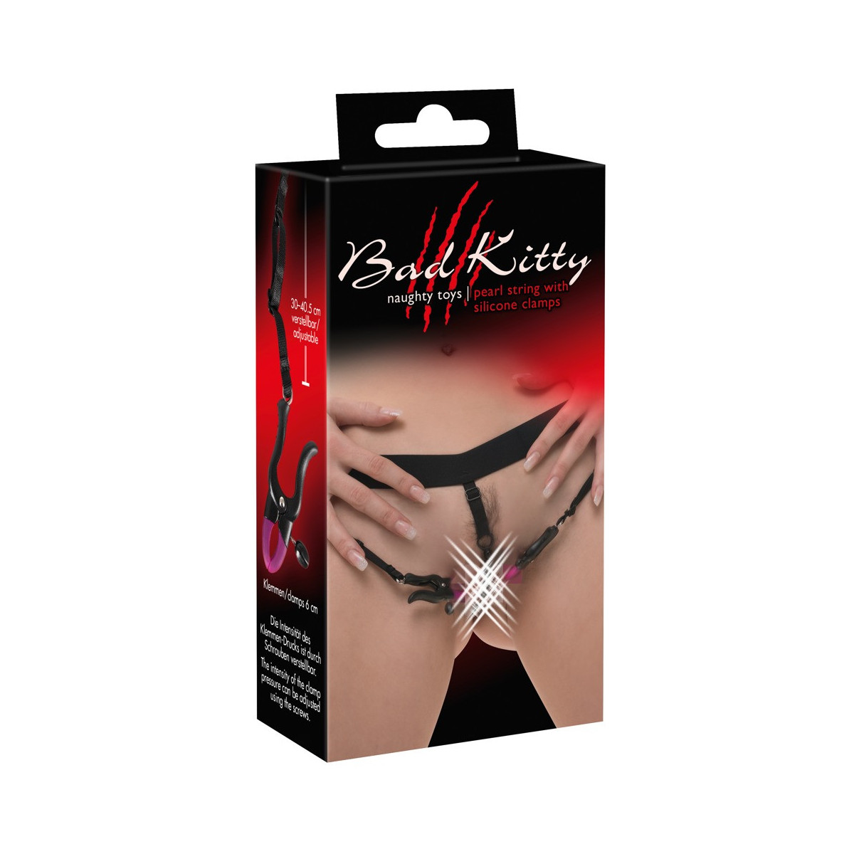 Bad Kitty String with Clamps - Perizoma, Morsetti per Labbra Vaginali, Stimolante