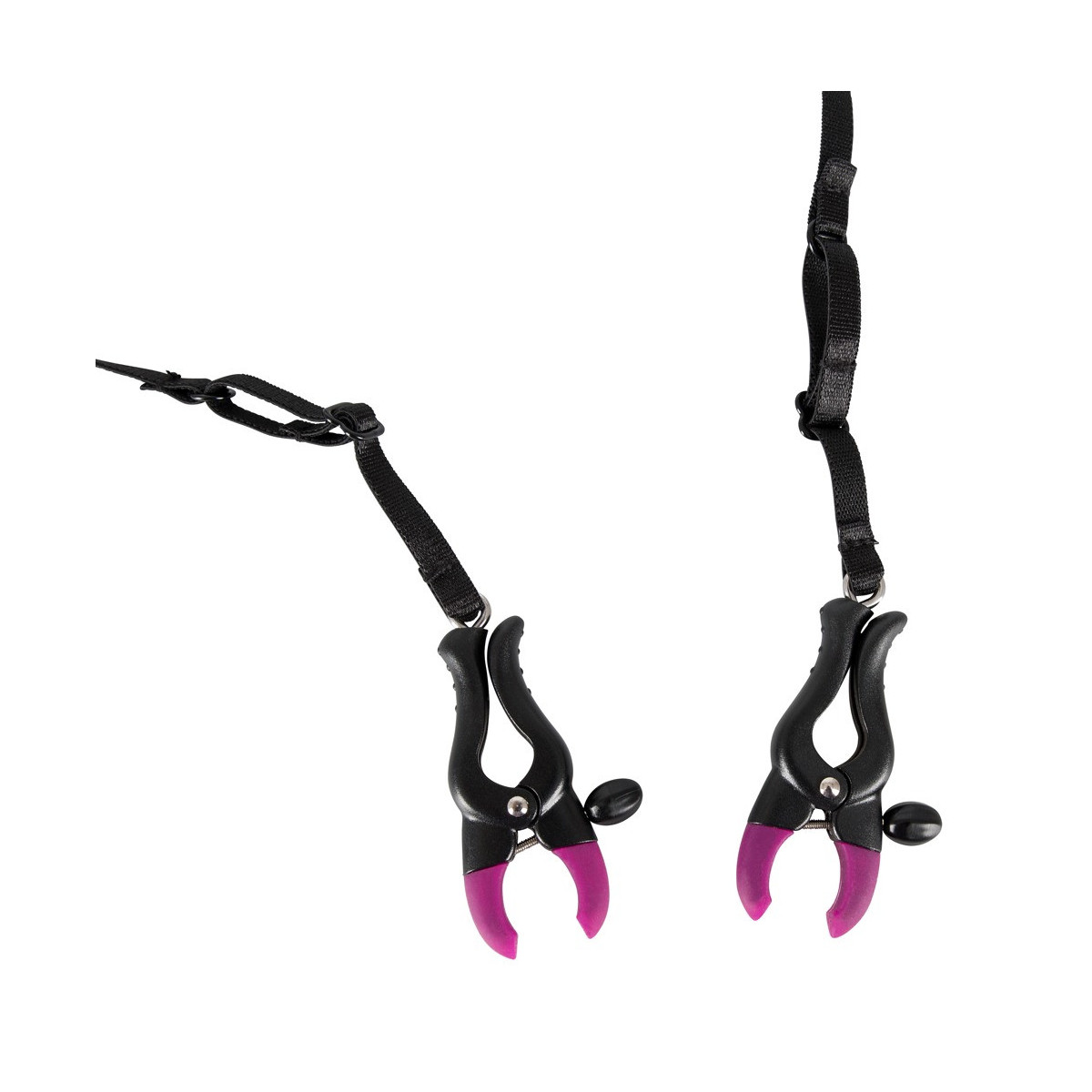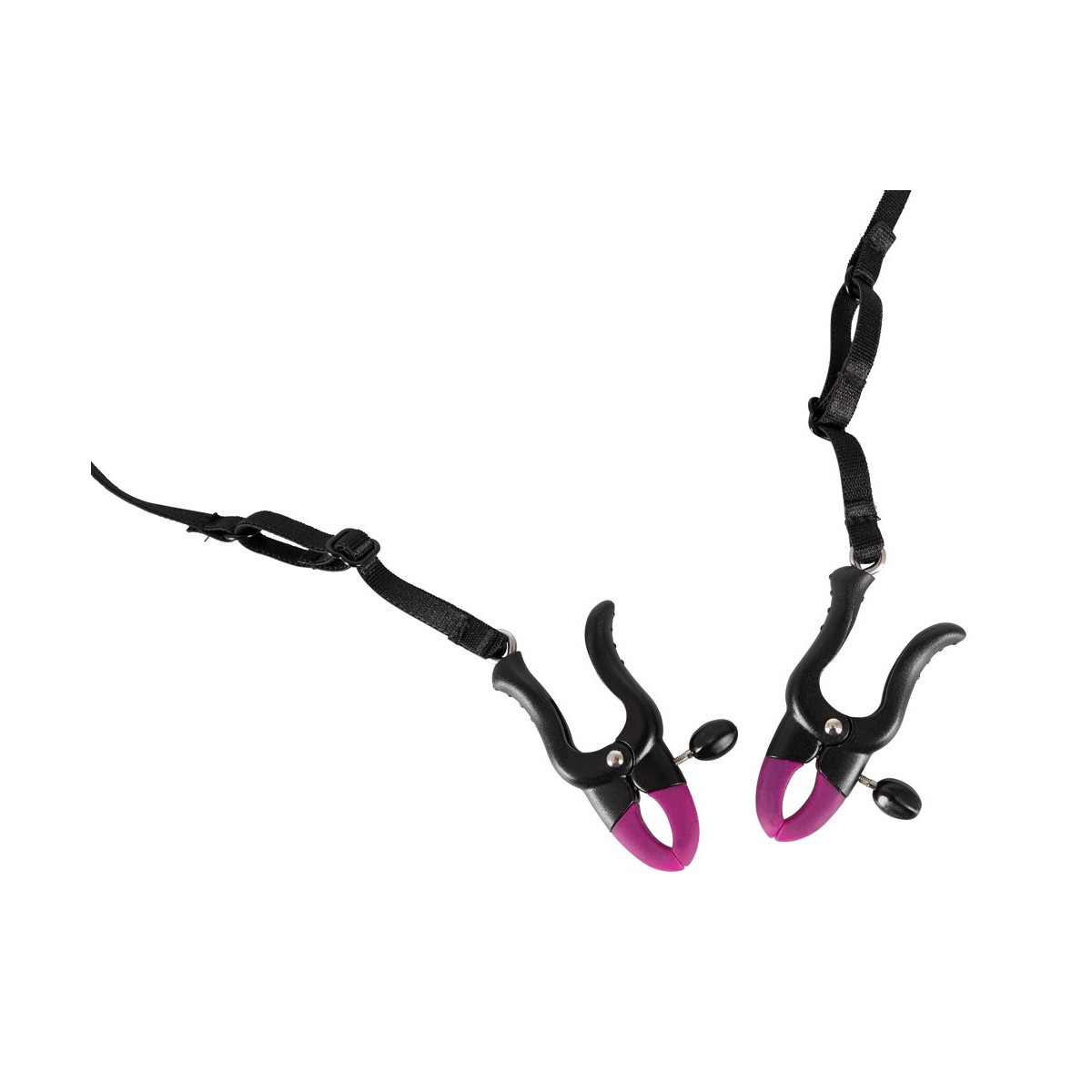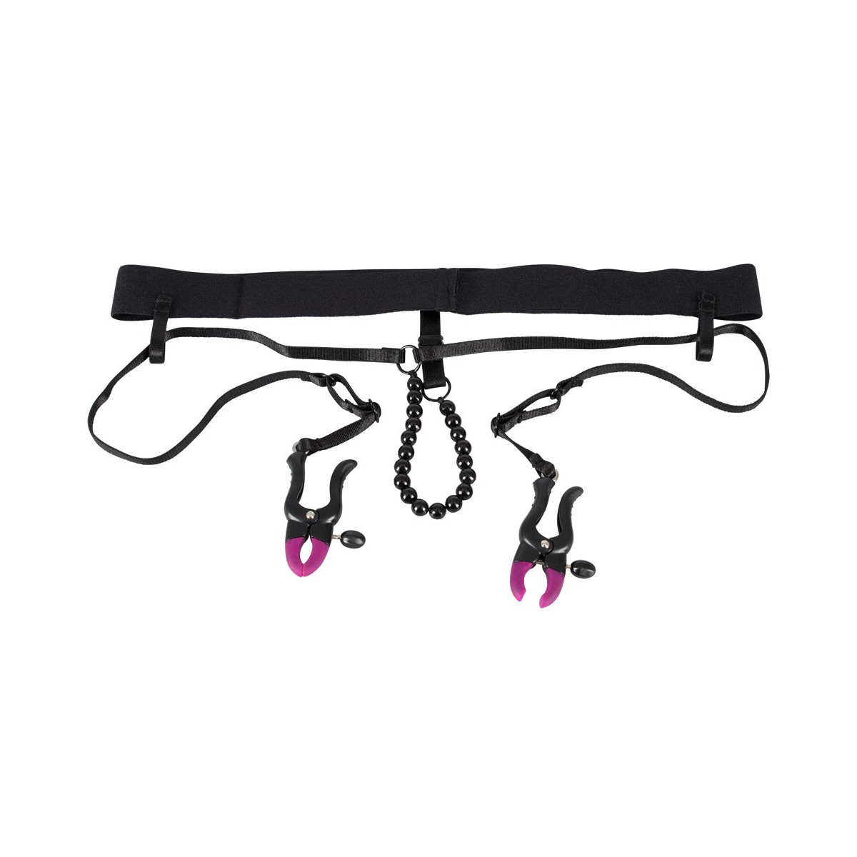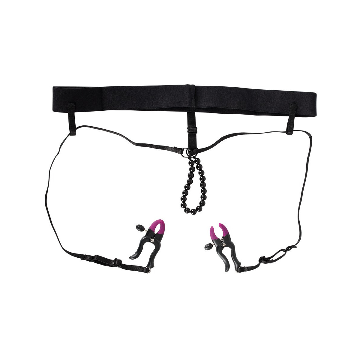 Questo perizoma nero con morsetti per le labbra e perline per la stimolazione del clitoride ti farà impazzire! Si può facilmente regolare l'intensità dei morsetti tramite le viti di regolazione. Posiziona le fasce da dietro intorno ai fianchi verso la parte anteriore e attacca i morsetti alle labbra. Sperimentate come sono eccitantemente tirati a parte e così il clitoride è invitantemente esposto. Non solo vi divertirete con esso...