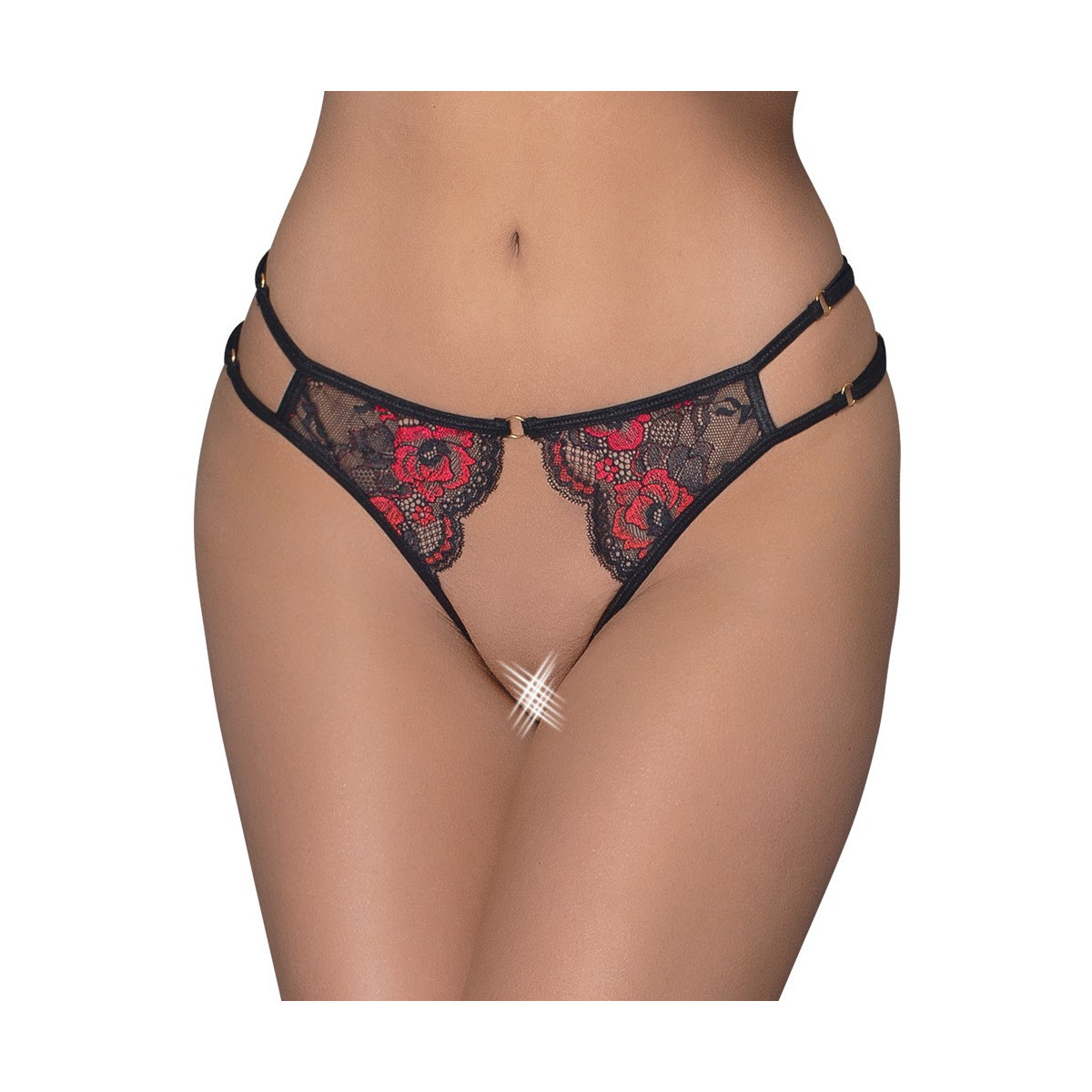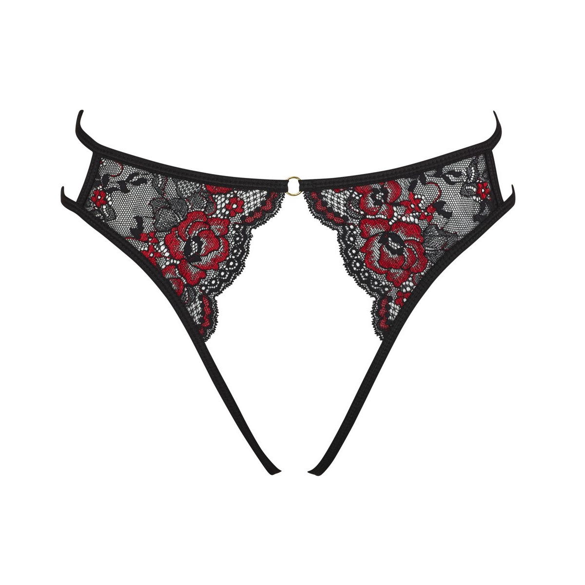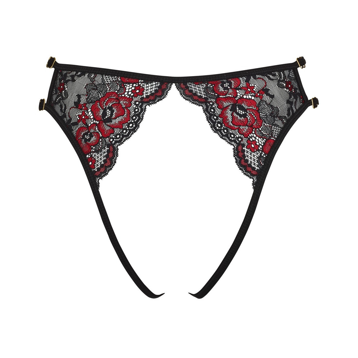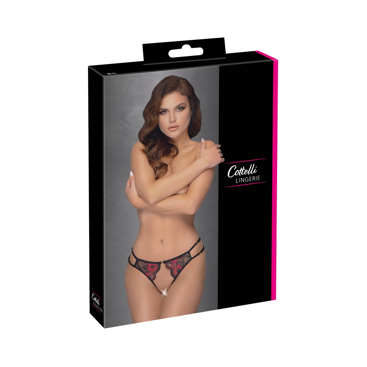 Cottelli Lingerie Crotchless Briefs - Slip, Pizzo, Rosso, Nero, Vagina e Ano Scoperti, Taglia S-L