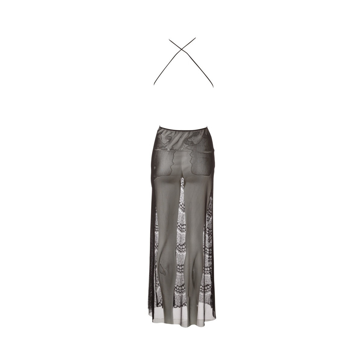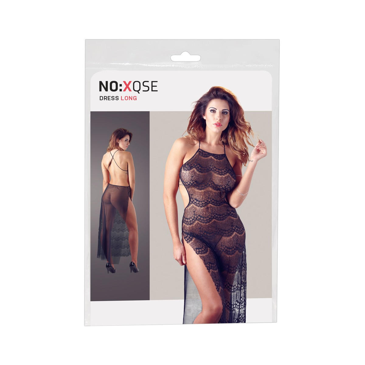 NoXqse Dress Long - Abito, Pizzo, Nero, Trasparente, Taglia S-M
