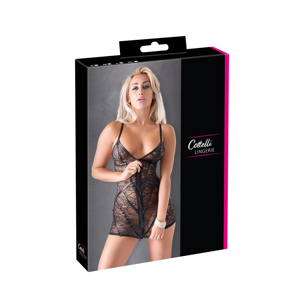Cottelli Lingerie Lace - Miniabito, Nero, Pizzo, Zip, Scollatura Posteriore, Taglia L