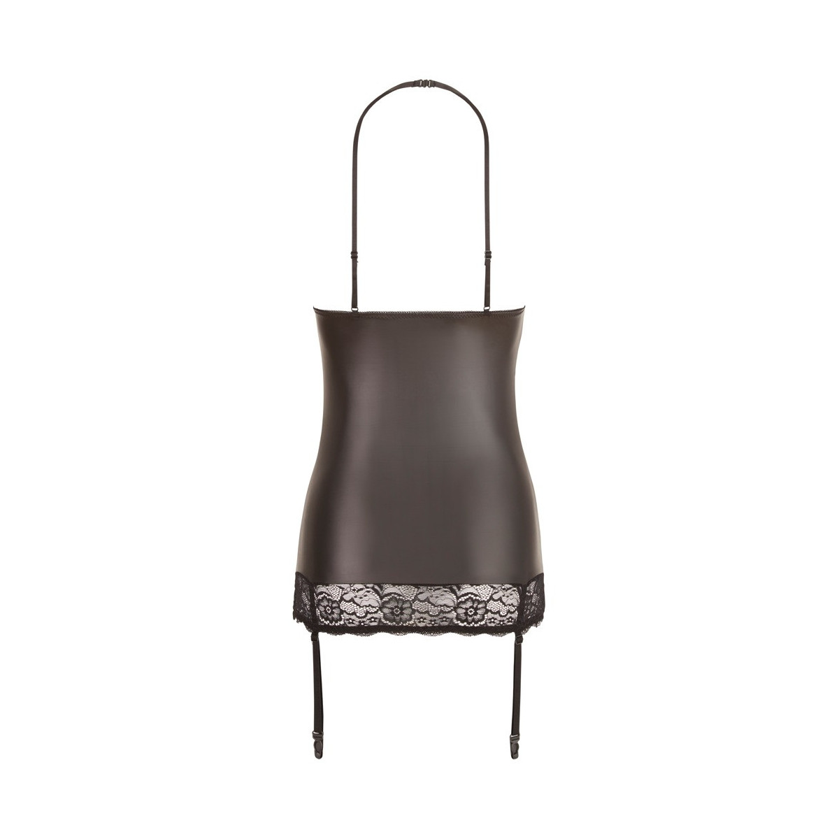 Abito intimo senza seno con inserti di pizzo nobile e un anello decorativo di strass nel décolleté. Eccitantemente scintillante, piacevolmente elastico e dalla vestibilità assolutamente sicura. Cinghie e bretelle regolabili.