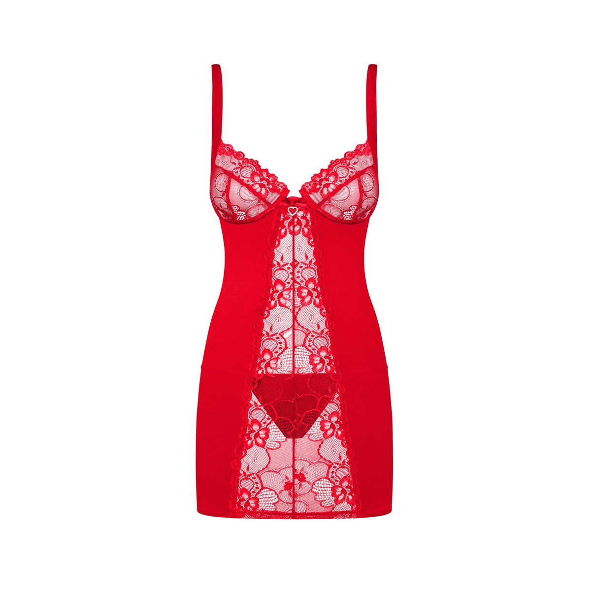 Obsessive Heartina - Miniabito, Perizona, Rosso, Pizzo, Aderente, Taglia S-M