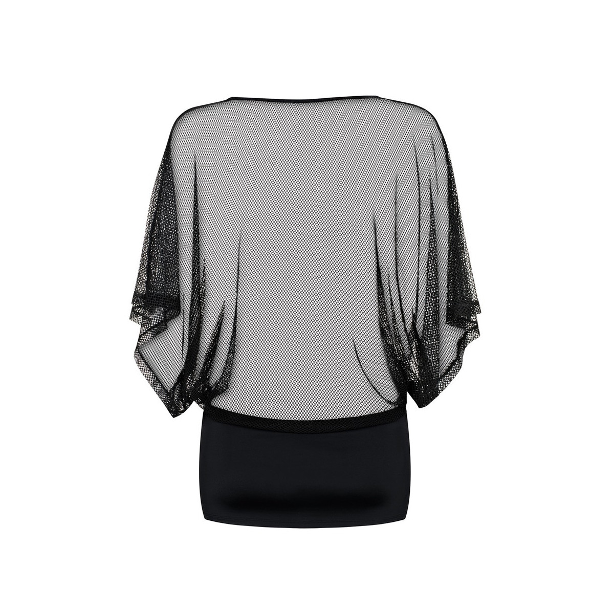 Il mini abito con parte superiore trasparente e ampia e gonna stretta può essere combinato con un reggiseno chic se necessario.