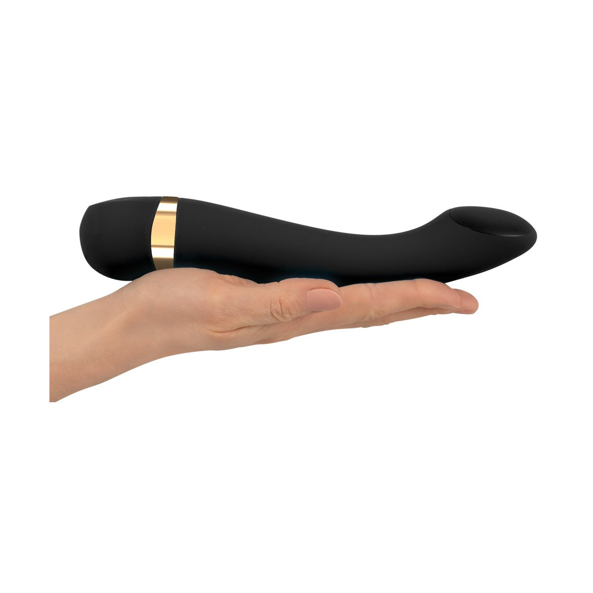 Ideale vibratore curvo hot 'n cold di You2Toys per coccole versatili su/all'interno del corpo. Con punta appiattita da appoggiare per massaggi mirati. Con una superficie morbida e setosa tutto intorno per un facile inserimento e una piacevole sensazione del corpo.