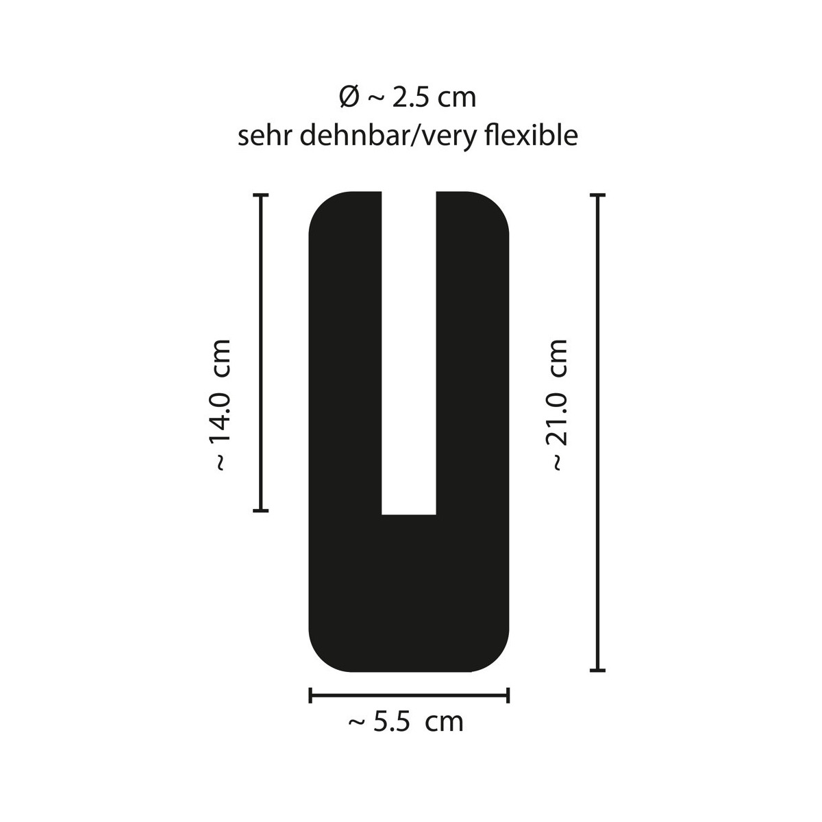 Lunghezza totale 21 cm, profondità di inserimento 14 cm, Ø interno 2,5 cm (espandibile).