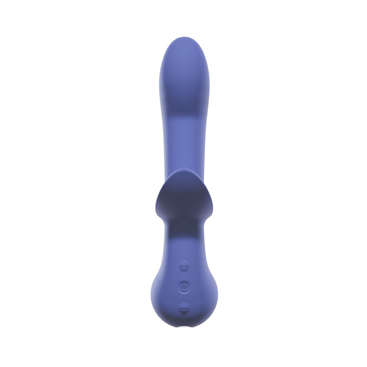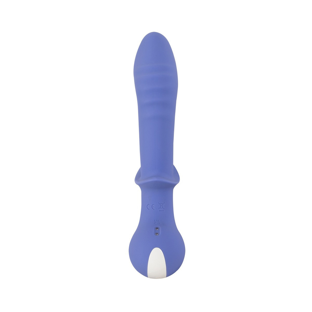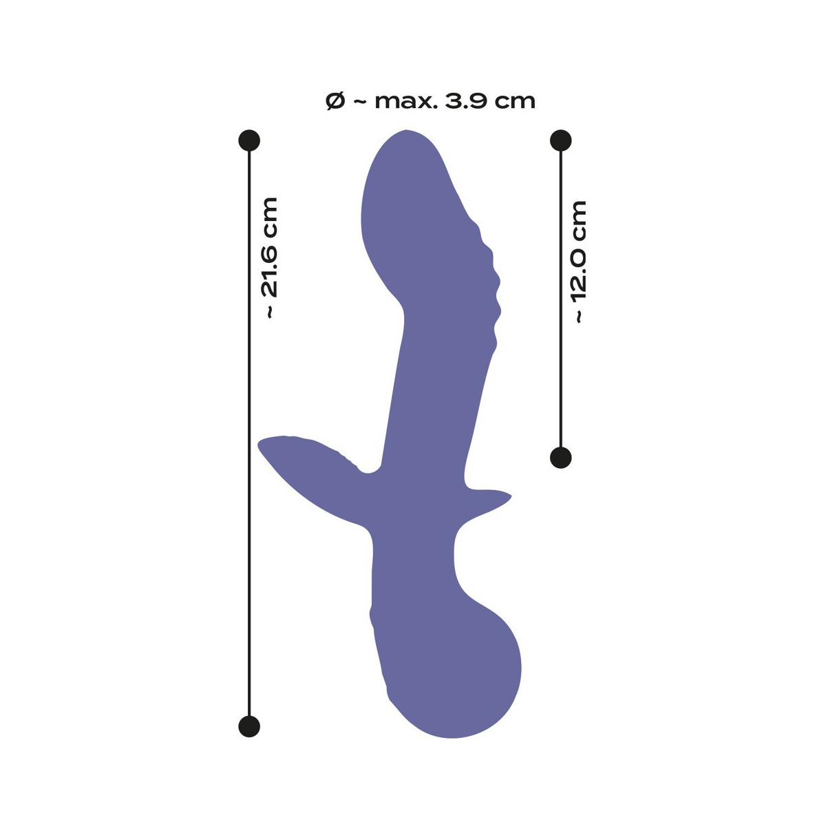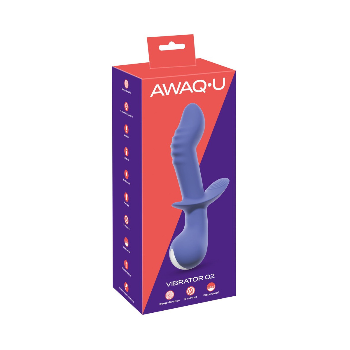 Elegante vibratore con stimolatore clitorideo AWAQ.U Vibrator 2 di You2Toys in colore viola di tendenza. Ben 2 potenti motori forniscono 10 modalità di vibrazione per l'asta e lo stimolatore clitorideo. Le potenti vibrazioni possono essere controllate direttamente sul toy premendo un pulsante: la vibrazione dell'asta con il pulsante On/Off, le vibrazioni dello stimolatore clitorideo con i due pulsanti +/-. Anche dentro/sotto l'acqua, perché questo coccolatore tuttofare è impermeabile.