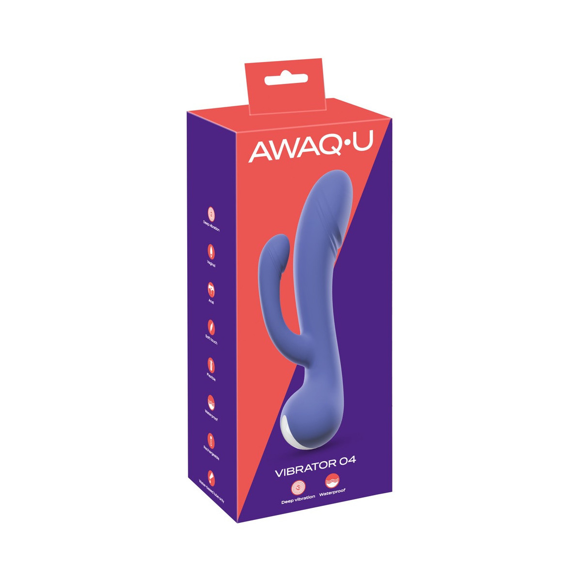 Elegante vibratore con stimolatore anale AWAQ.U Vibrator 4 di You2Toys in colore viola di tendenza. Il suo potente motore offre 10 intense modalità di vibrazione che possono essere percepite in profondità. Le modalità possono essere controllate direttamente sul giocattolo con la semplice pressione dei due pulsanti +/-. Anche dentro/sotto l'acqua, perché l'AWAQ.U Vibrator 4 è impermeabile.