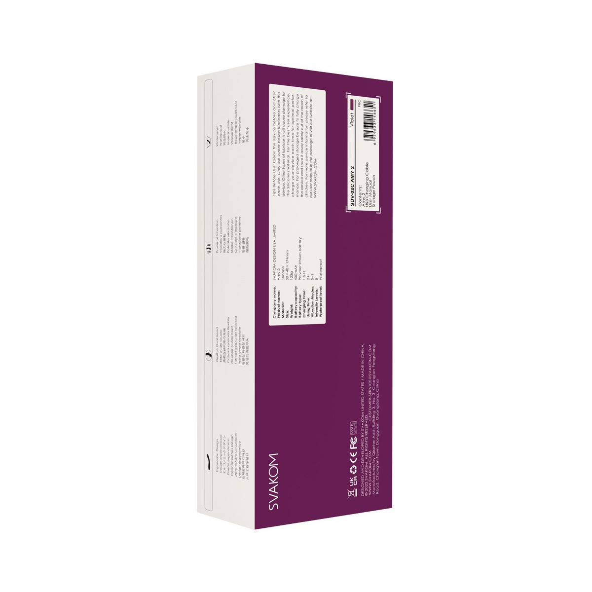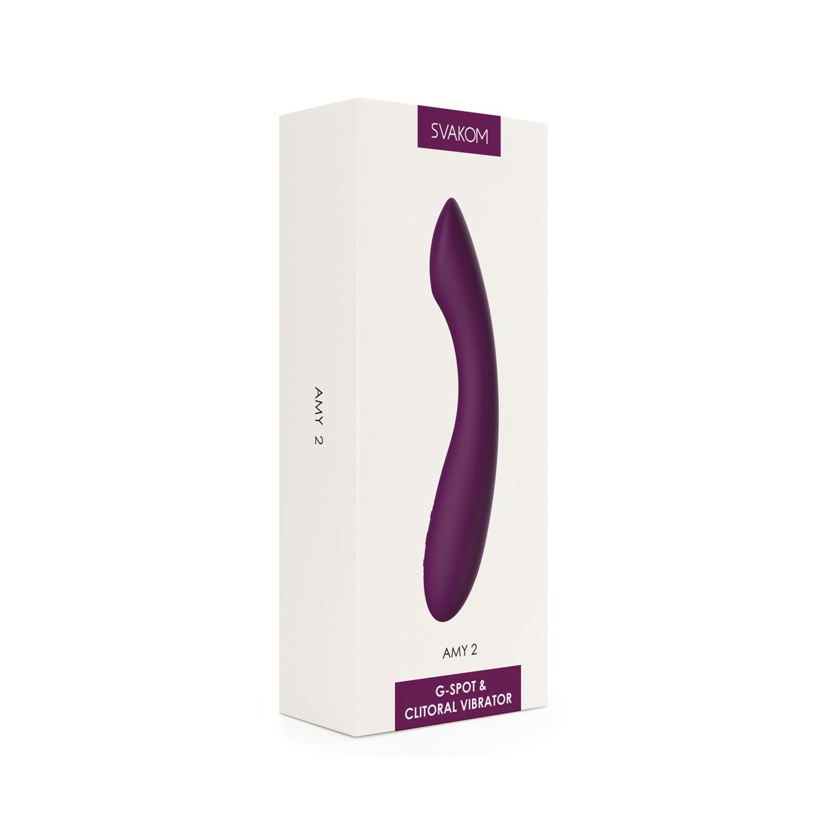 Vibratore ergonomico perfettamente curvo Amy 2 di Svakom con punta appiattita per la stimolazione mirata dei punti di piacere all'interno e sul corpo. Morbido e setoso, il vibratore flessibile in silicone si adatta perfettamente alla mano e scivola sulla pelle e nelle profondità intime come se fosse da solo. Questo peso leggero ad alta intensità di stimolazione può essere incluso in ogni gioco solitario e d'amore