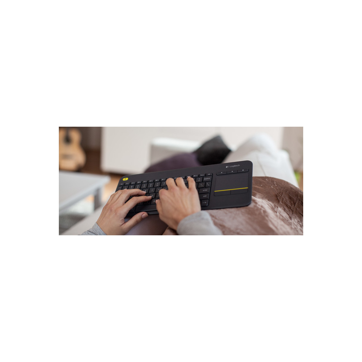 Logitech K400 Plus. Stile tastiera: Dritto. Tecnologia di connessione: Senza fili, Interfaccia dispositivo: RF Wireless, Struttura tastiera: QWERTZ, Utilizzo raccomandato: Casa. Colore del prodotto: Nero
