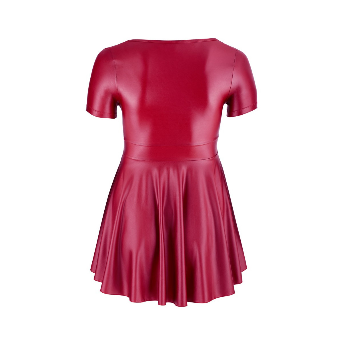 Mini abito con scollo rotondo, maniche corte e gonna svasata e svasata. Cintura in vita, davanti con fibbia decorativa.
