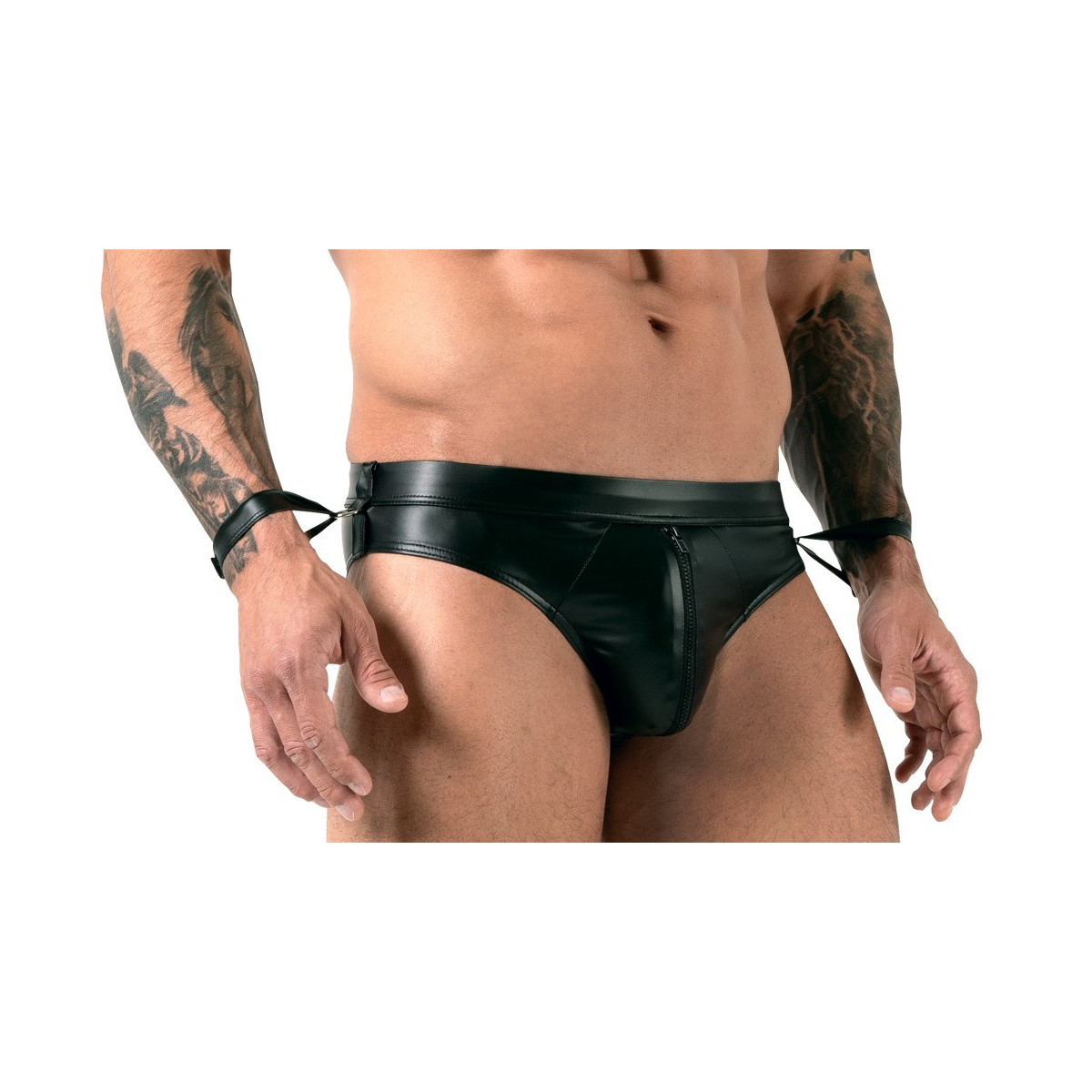 Eccitante slip jock senza culo di Svenjoyment Bondage in un look opaco alla moda che accentua in modo eccitante le sue parti migliori. Ognuno con un anello sul lato per le due cinghie di manette chiuse con chiusure in velcro regolabili.