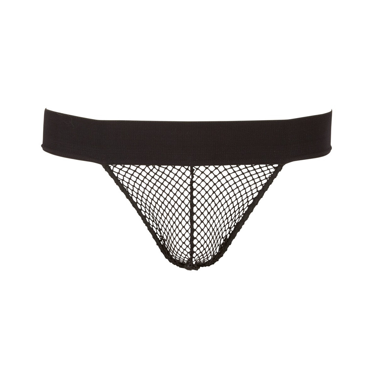 La mascolinità è messa sexy in primo piano con questo jock fatto di morbida maglia grossa. La cintura elastica tessuta extra larga e lo slip libero completano il look erotico.
