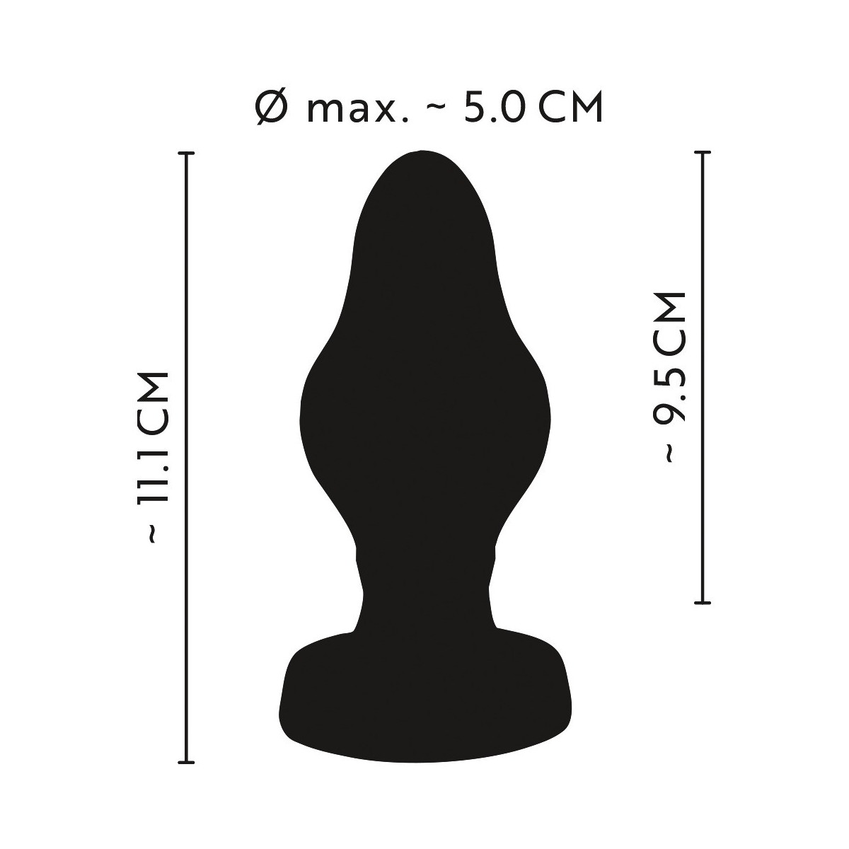 Lunghezza totale 11,1 cm, lunghezza d'inserimento 9,5 cm, Ø max. 5 cm, cono Ø 2,6 cm.