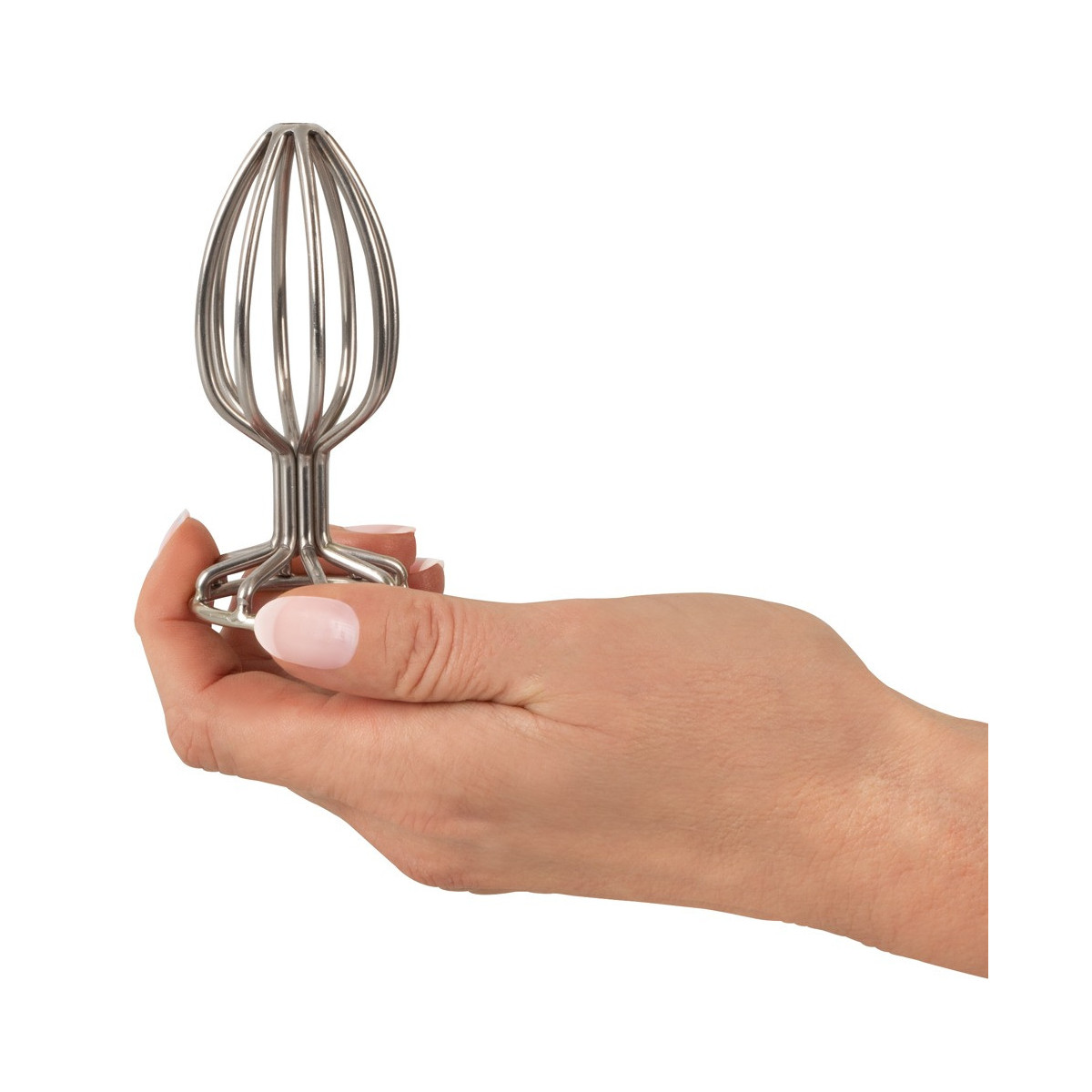 Il butt plug Metal Cage Ø 3,8 cm di ANOS in un sofisticato design cavo non solo offre una grande stimolazione anale e uno stiramento delicato, ma anche eccitanti viste e intuizioni sui glutei. La sua grande base offre la giusta visuale e una manipolazione sicura senza scivolare - così è possibile anche un piacere duraturo da indossare.