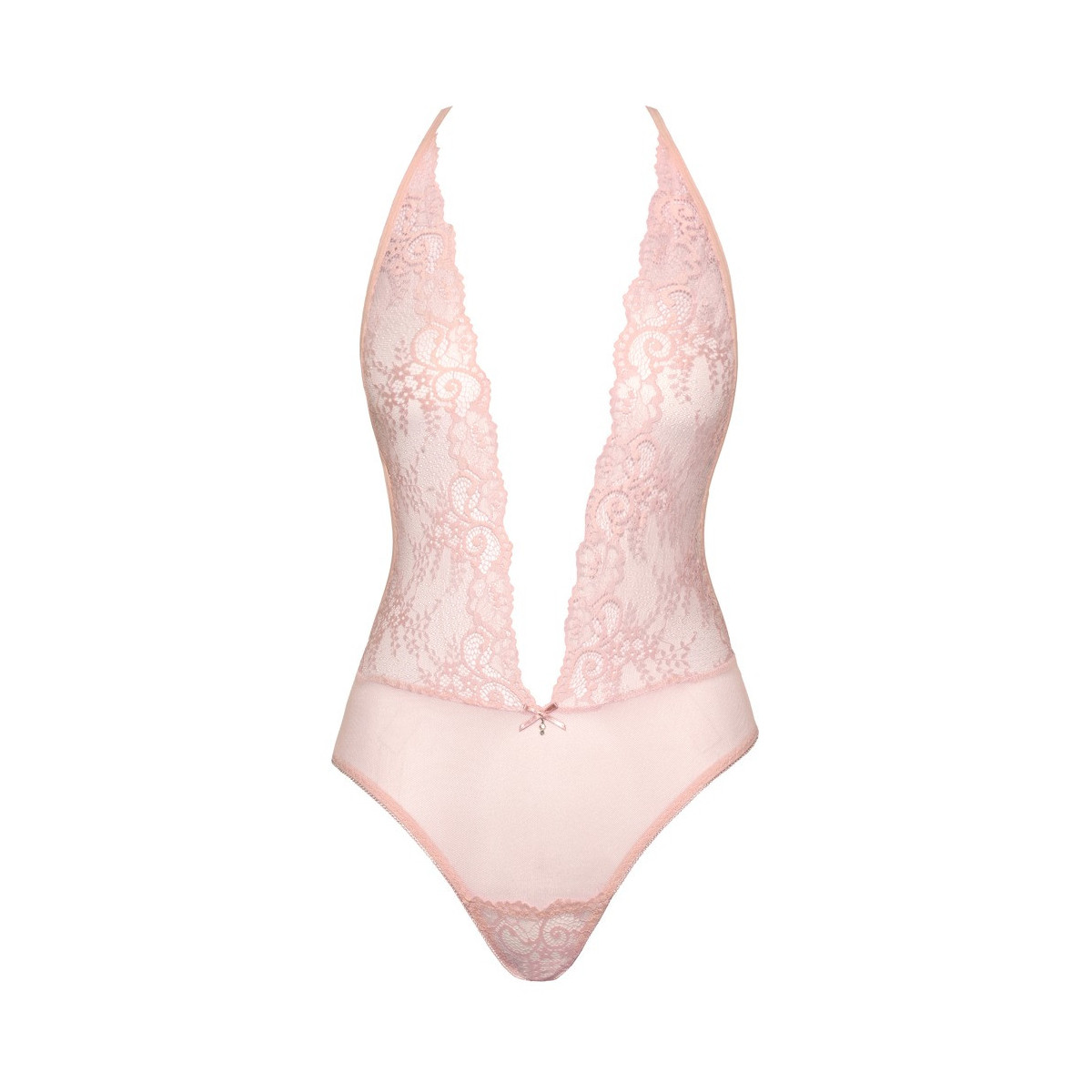 Body extra scollato di Kissable, realizzato in pregiato powernet misto a pizzo delicato. Morbido ed elastico su tutta la superficie per il massimo comfort. Le spalline regolabili si incrociano sulla schiena.